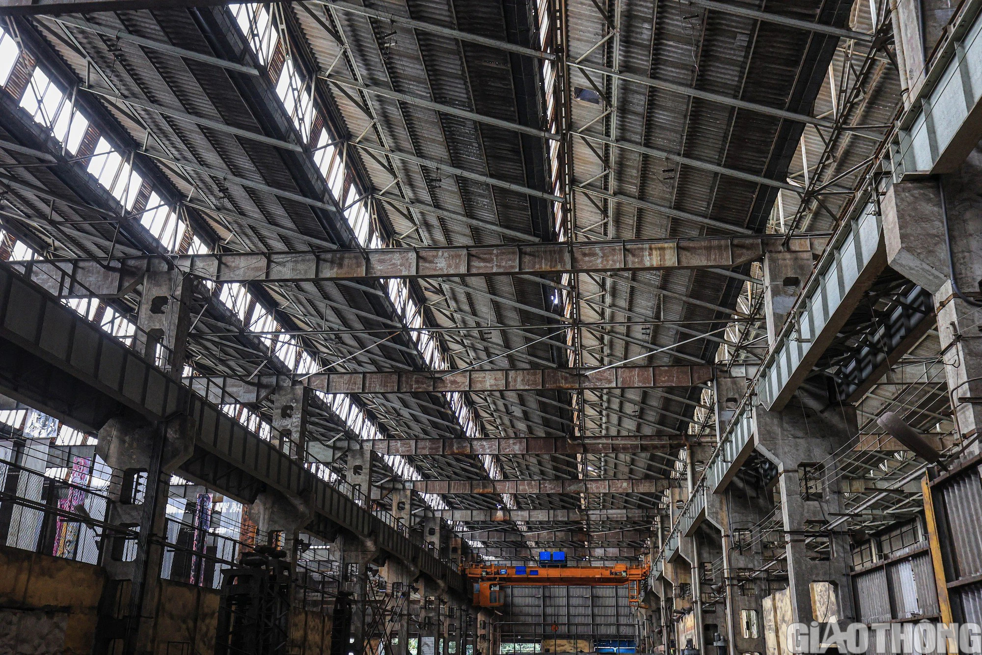 Hệ thống cơ sở hạ tầng, nhà xưởng đã được Ba Lan hỗ trợ đầu tư đồng bộ, được thiết kế theo đặc thù của đường sắt để đáp ứng công suất tối đa là đóng mới gần 1.200 toa xe, sửa chữa hơn 120 đầu máy và 600 toa xe/năm. Trong ảnh: Xưởng sửa chữa, đóng mới đầu máy, toa xe có mái che được thiết kế đặc biệt, với dàn kính lấy ánh sáng; cùng đó là hệ thống cần trục trên cao có thể nâng hàng trăm tấn.