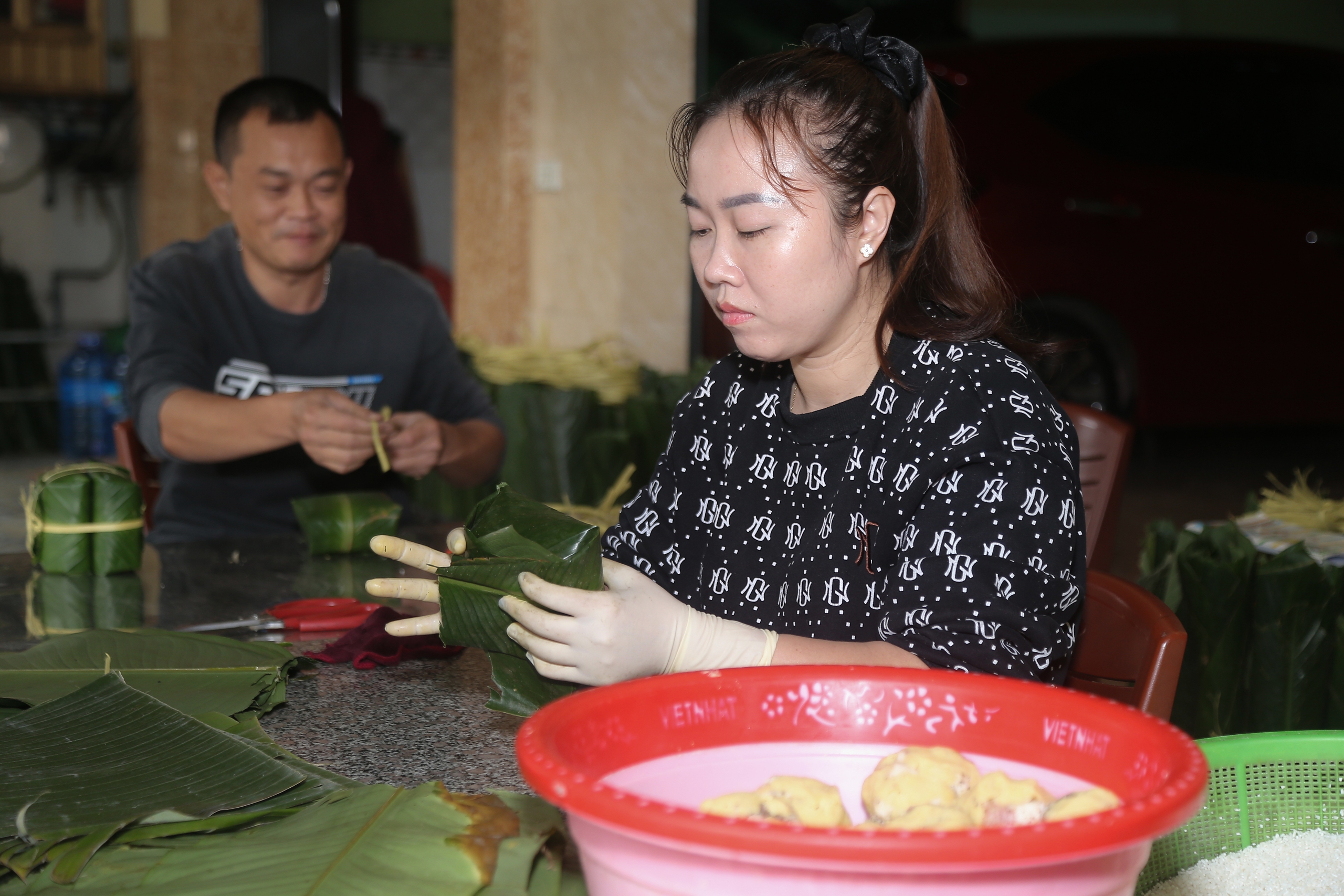 Xác nhận thông tin, chị Lê Thị Kiều Mỹ (con gái bà Nhường) cho biết, để đảm bảo năng suất và chất lượng, mỗi người sẽ làm một khâu. Riêng chị chỉ tập trung gói bánh, mỗi ngày dịp Tết chị gói khoảng hơn 1.000 cái bánh chưng.