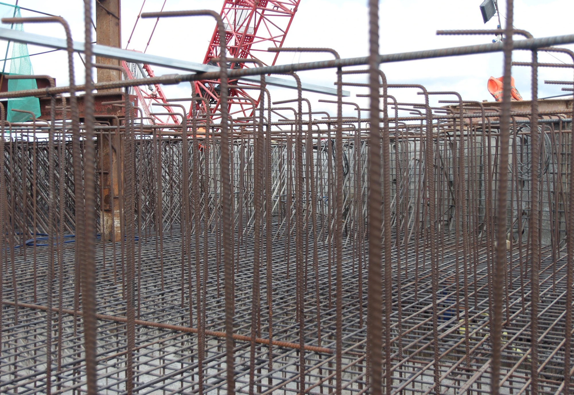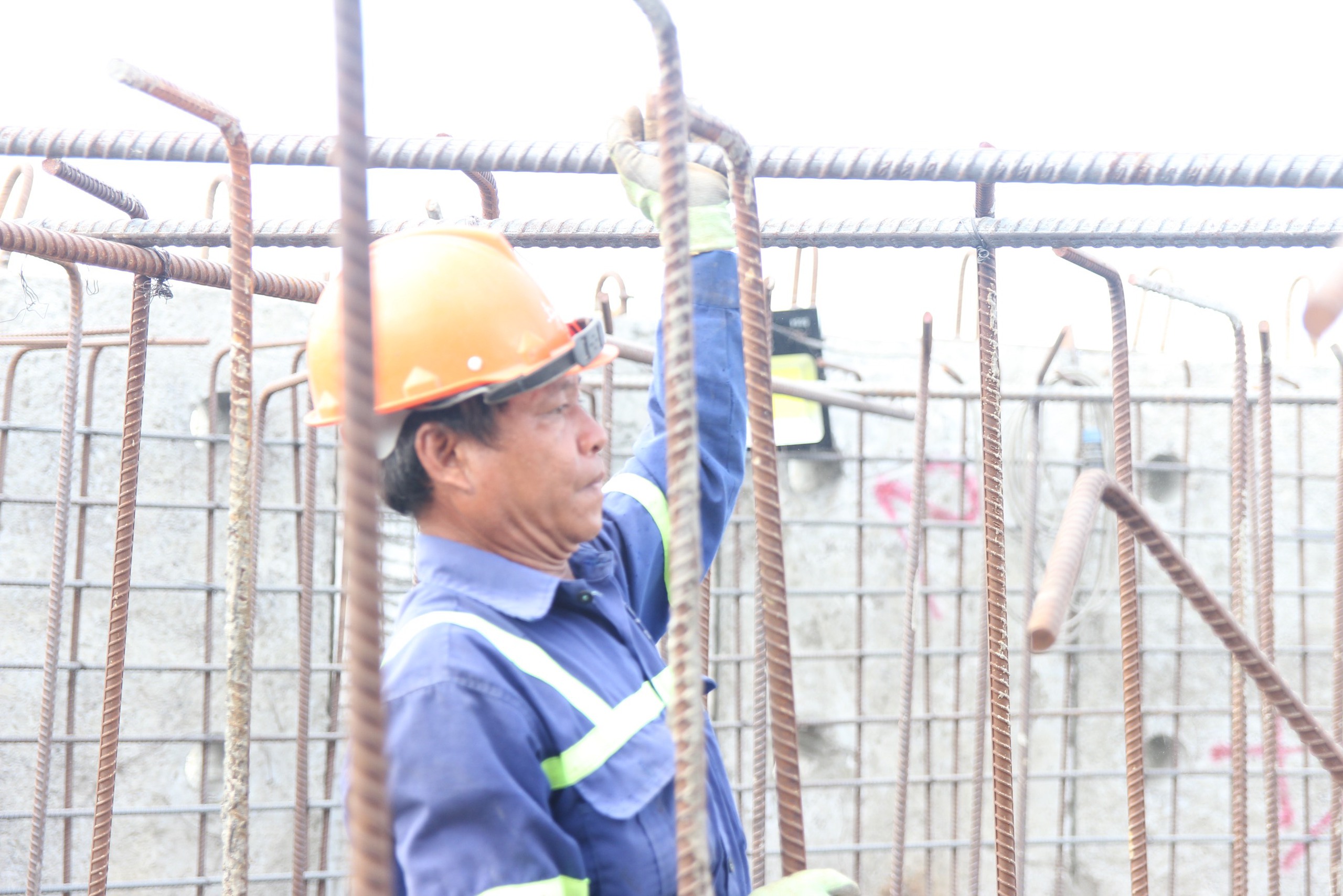 Các trụ cầu đang được triển khai phần sắt, độ cao của trụ tăng theo ngày.
