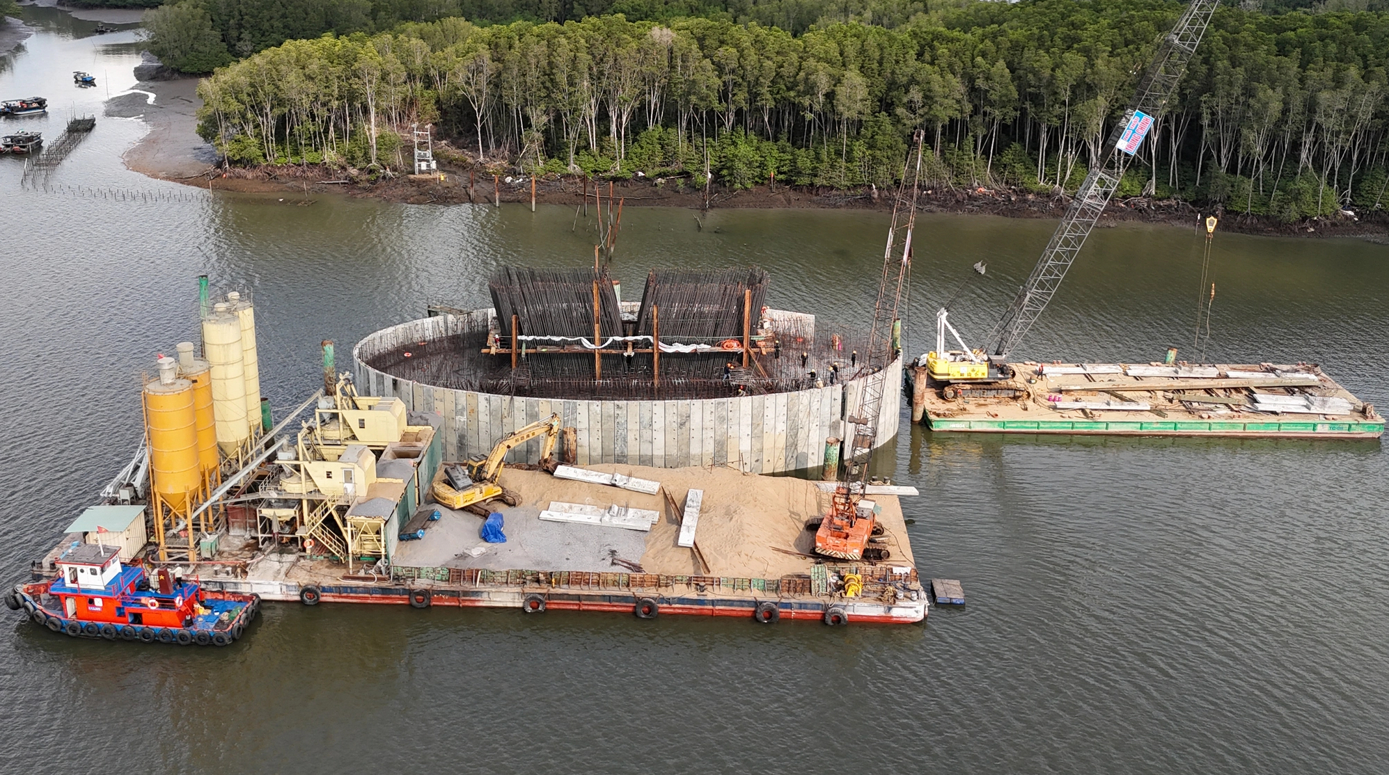 Liên danh các nhà thầu đã huy động nhiều phương tiện, thiết bị, sà lan… đến công trường để đẩy nhanh quá trình thi công dự án.