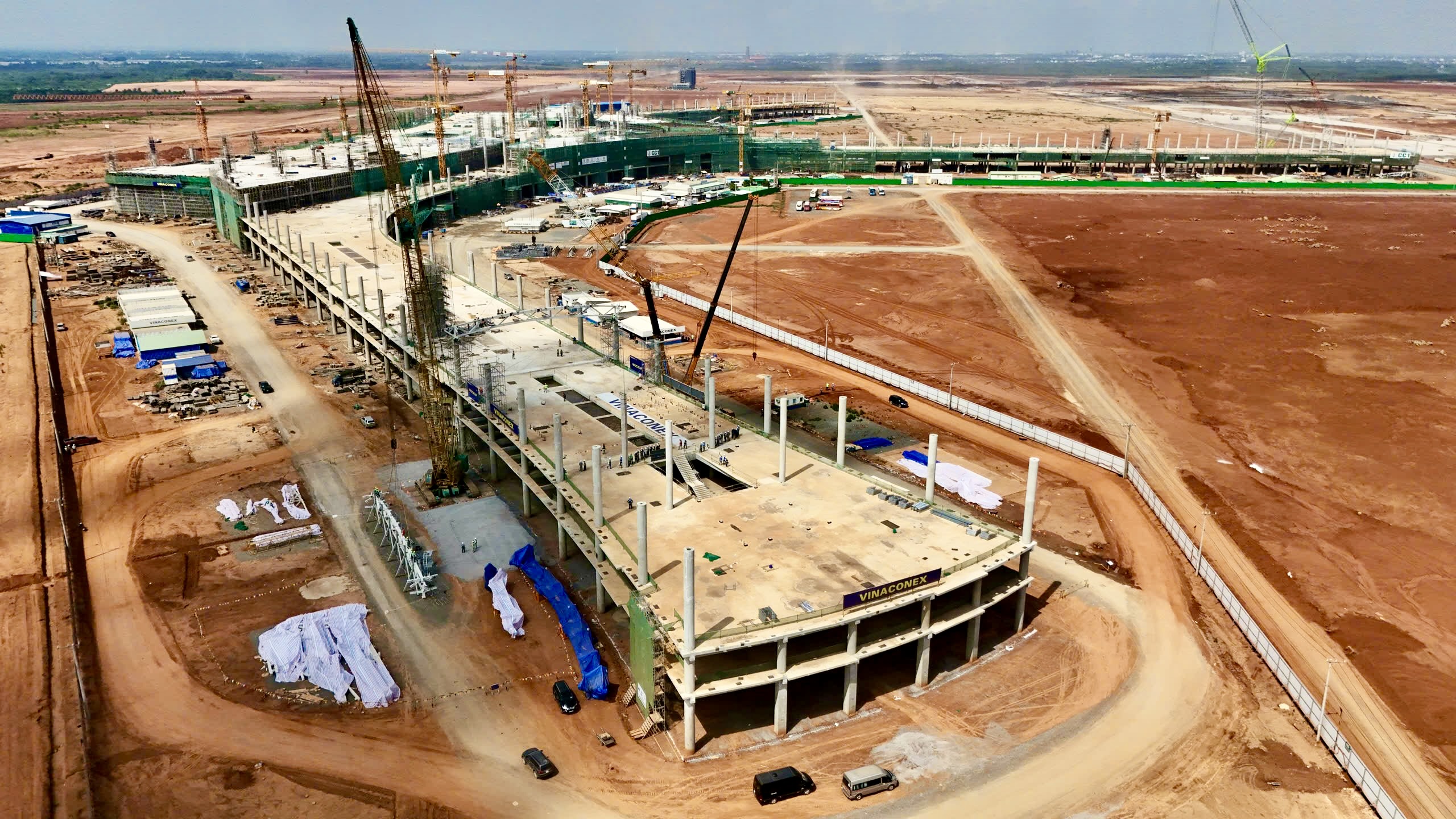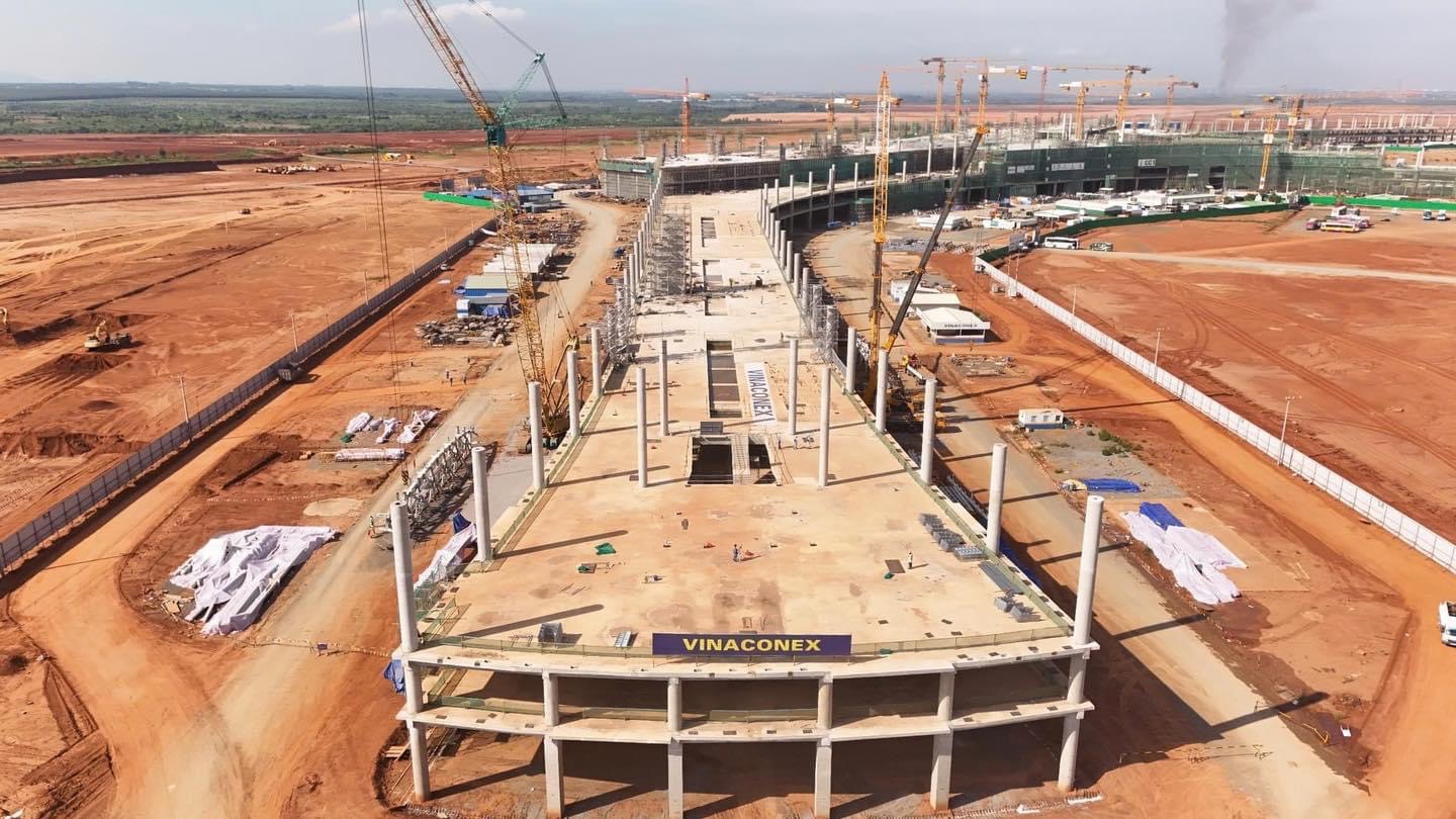 Khung cảnh nhà ga giờ đã khác xưa với những khối bê tông vững chắc đã nên hình nên vóc. "Với tiến độ như hiện nay, dự kiến 2/9/2026 chuyến bay thương mại đầu tiên sẽ được cất cánh từ sân bay Long Thành", ông Lại Xuân Thanh, Chủ tịch HĐQT Tổng công ty Cảng hàng không Việt Nam đã nói.