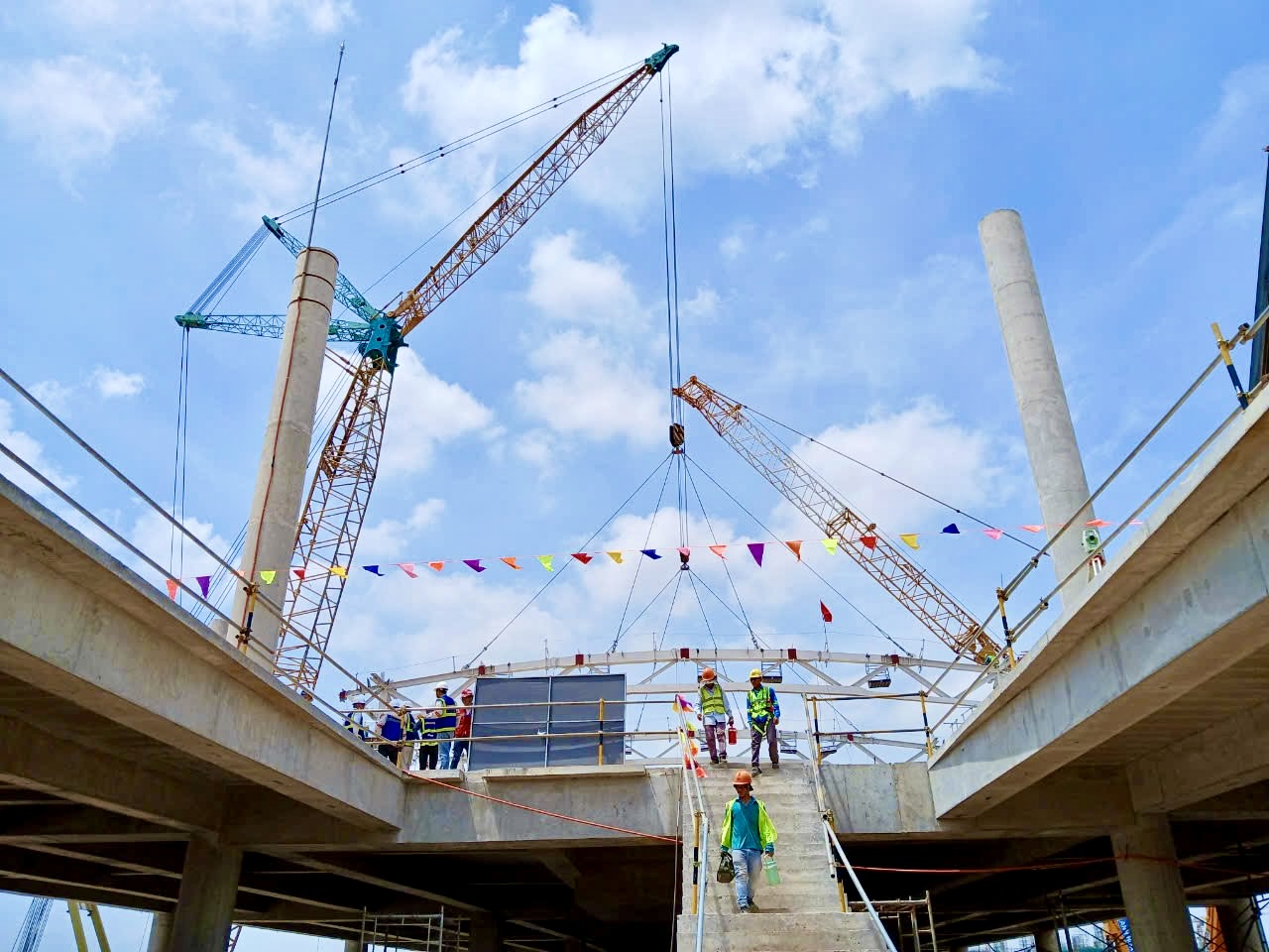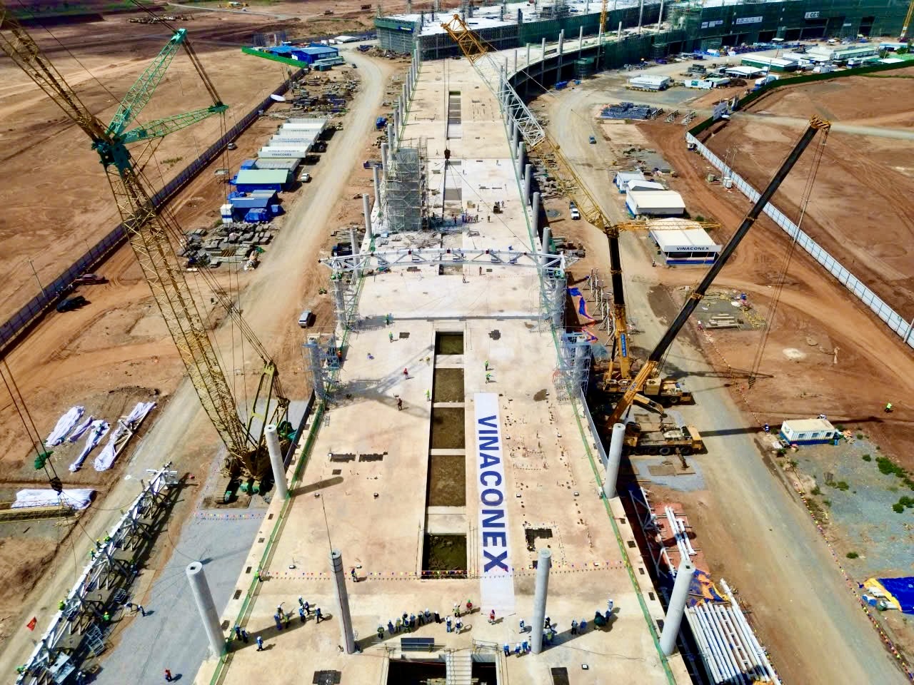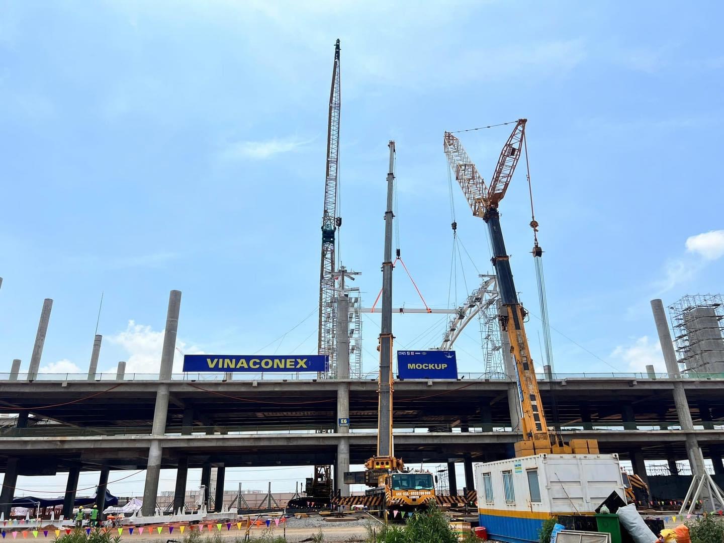 Đây là giai đoạn quan trọng khi liên danh nhà thầu đã cho cất nóc, lắp dựng kết cấu thép mái nhà ga, tạo nên dấu ấn cuối cùng trước khi công trình hoàn thiện.