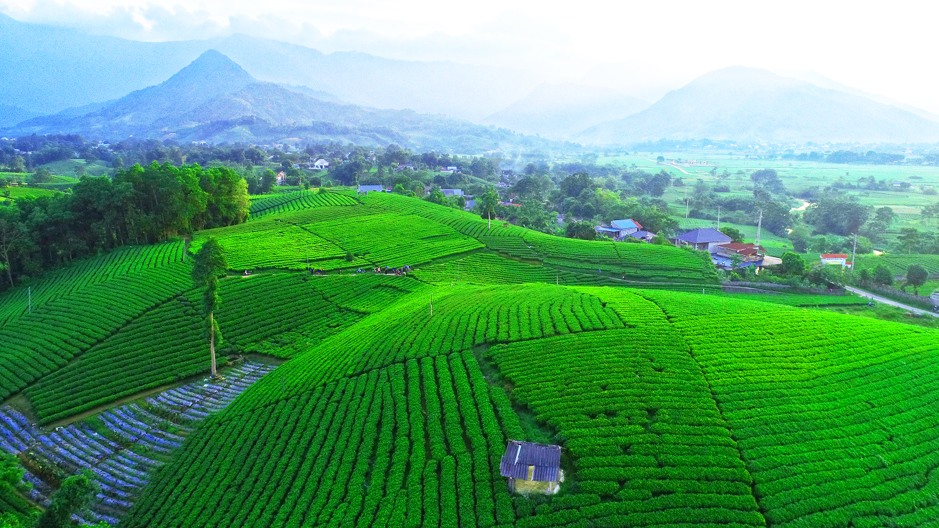 Những đồi chè xanh bạt ngàn tại xã Bản Ngoại, huyện Đại Từ, Thái Nguyên là một trong những nơi cung cấp nguyên liệu để sản xuất Trà Xanh Không Độ.