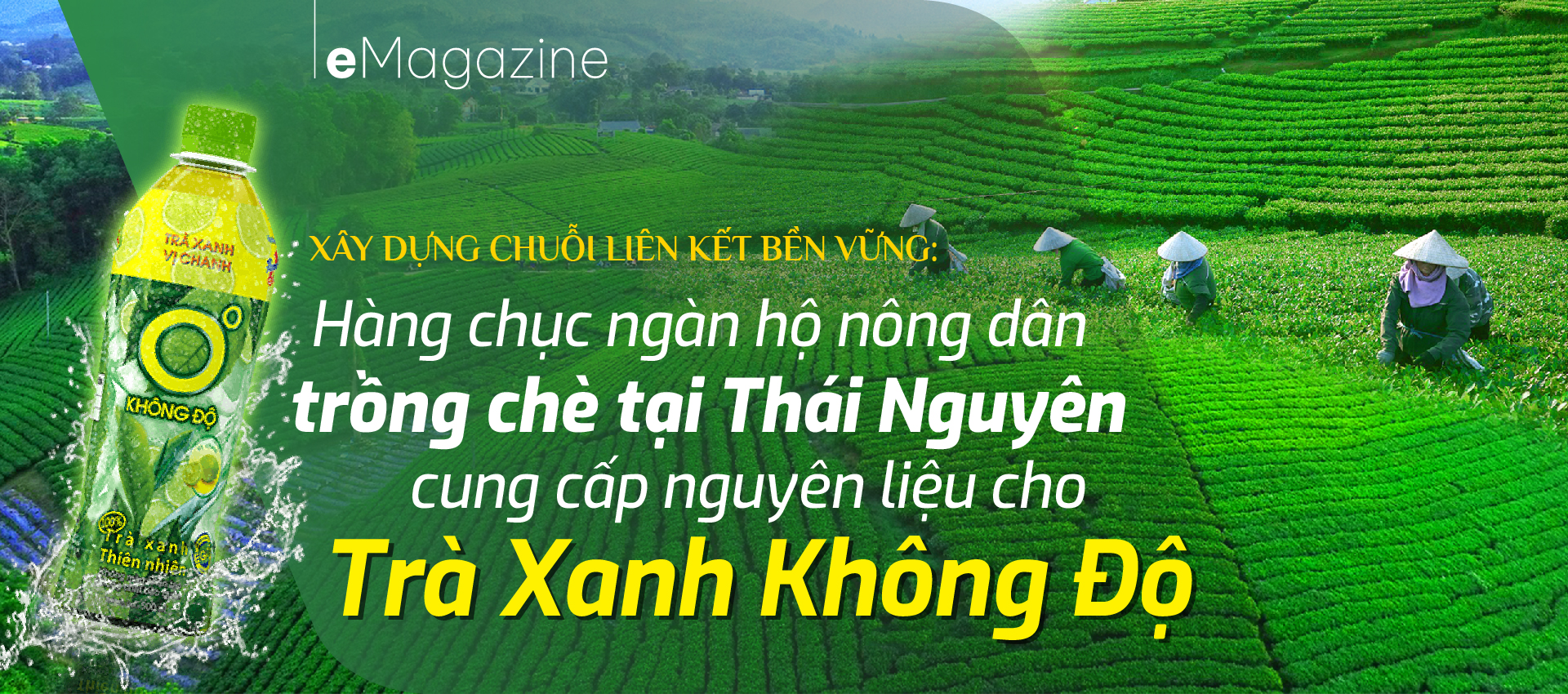 Ông Đặng Quốc Thăng, Phó giám đốc Công ty TNHH Chè Minh Phương (xã Cổ Lũng, huyện Phú Lương, Thái Nguyên), một nhà cung cấp trà nguyên liệu cho Tân Hiệp Phát chia sẻ mỗi năm công ty chuẩn bị 1.600-1700 tấn trà bán thành phẩm xuất đi làm nguyên liệu đầu vào cho sản phẩm Trà Xanh Không Độ. Để có được sản lượng này, công ty liên kết với các hợp tác xã trồng chè trong vùng, đặt bao tiêu sản phẩm, đưa ra quy trình trồng chè đạt theo tiêu chuẩn của khách hàng.