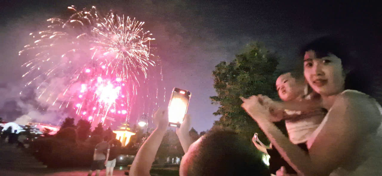 Người dân ghi lại màn pháo hoa đặc sắc.