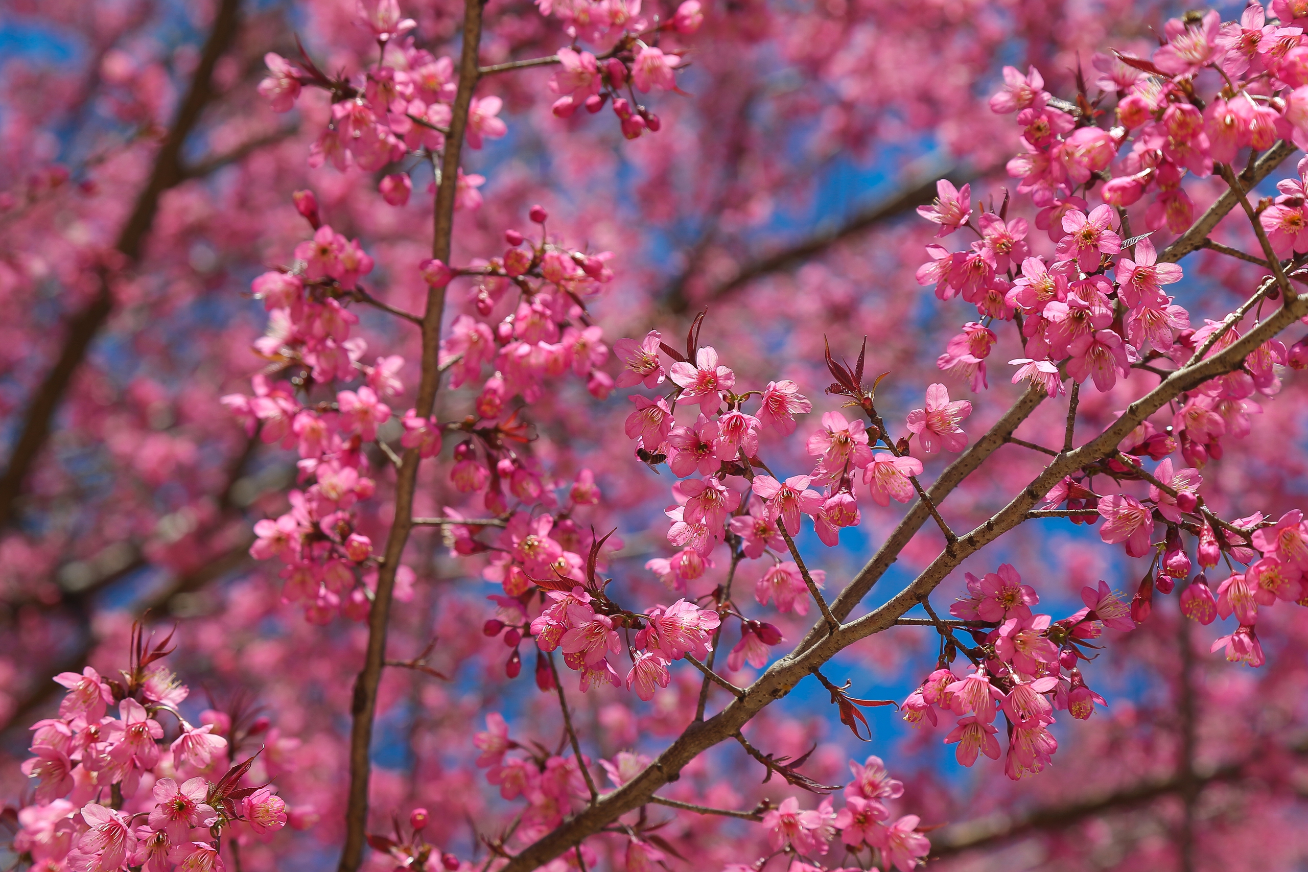 Từ tháng 12 hằng năm, hoa anh đào đua nhau nở, nhuộm đỏ hồng cả một vùng biên viễn. Mùa hoa anh đào kéo dài khoảng 2 tháng, trời càng lạnh, hoa càng lâu tàn.