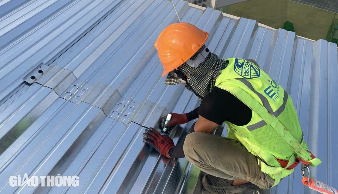 Theo các kỹ sư, mái nhà ga có 5 lớp, mỗi lớp đều phải được thi công theo đúng quy trình kỹ thuật, độ chính xác cao. Khi lắp đặt phần mái được kiểm tra kỹ lưỡng từ độ phẳng, độ kín đến khả năng chống chịu thời tiết. “Mỗi lớp mái đều đóng vai trò quan trọng như cách nhiệt, chống thấm, bảo vệ bề mặt đảm bảo độ bền vững… Khi lắp xong một lớp sẽ phải đo đạc căn chỉnh khi nào chuẩn mới có thể lợp vị trí mới”, anh Nguyễn Văn Tâm thi công lợp mái chia sẻ.