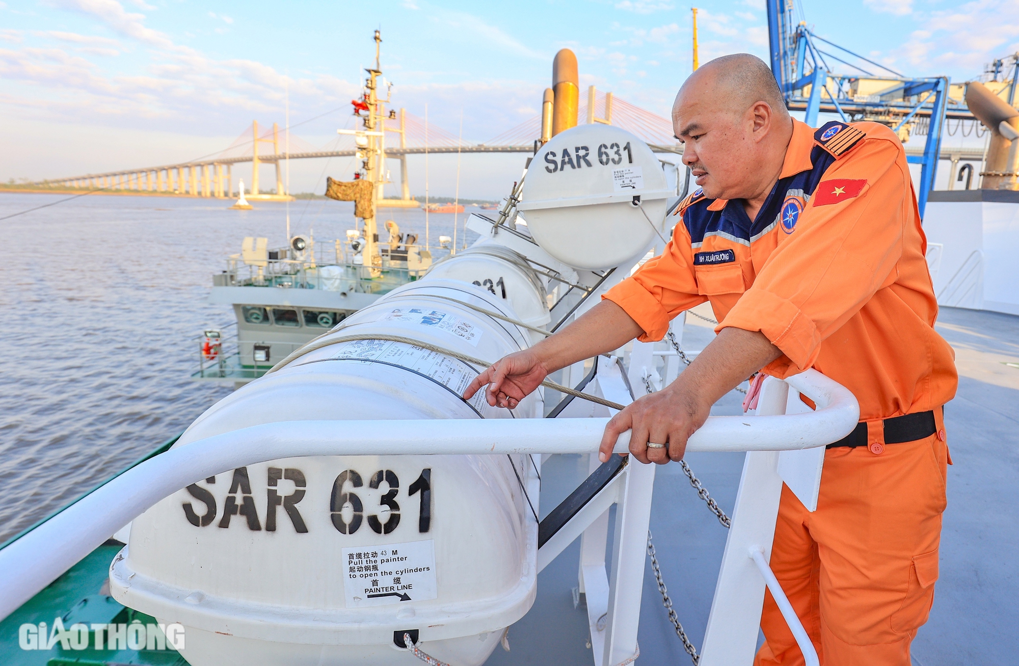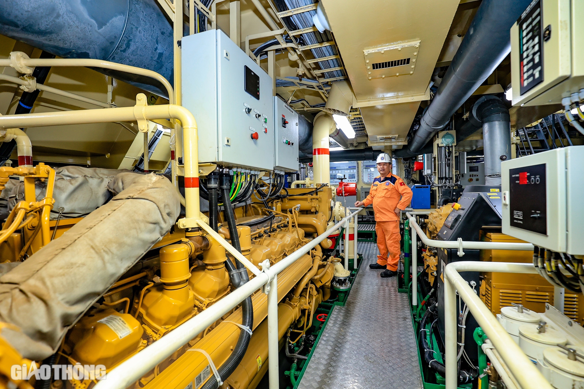 Máy trưởng tàu SAR 631 Đặng Văn Thuấn cho biết, tàu được trang bị 2 động cơ máy chính với công suất 2525 KW và chân vịt biến bước. Hệ động lực thủy này cung cấp công suất mạnh mẽ, giúp tàu di chuyển nhanh, linh hoạt và ổn định trong mọi tình huống, tối ưu hóa hiệu suất nhiên liệu.
