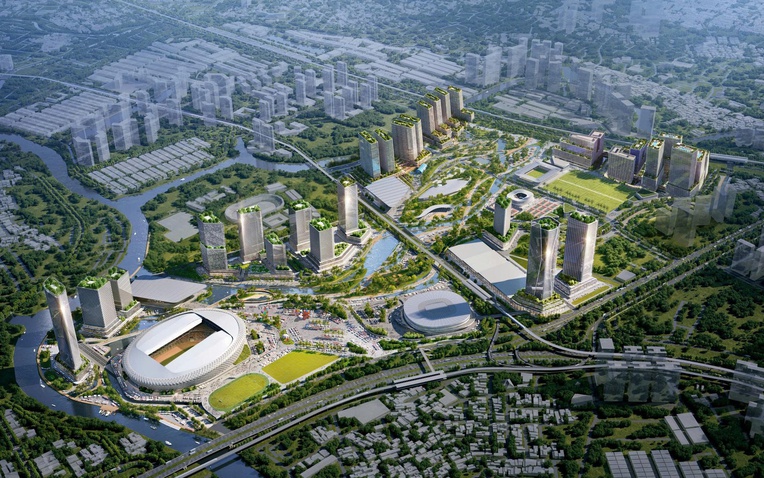 Phối cảnh Khu liên hợp thể dục thể thao Quốc gia Rạch Chiếc vừa được công bố trong khuôn khổ hội nghị công bố quy hoạch chi tiết 1/500, cho thấy diện mạo một trung tâm thể thao hiện đại quy mô gần 187ha của TP.HCM, dự kiến động thổ vào ngày 15/1.