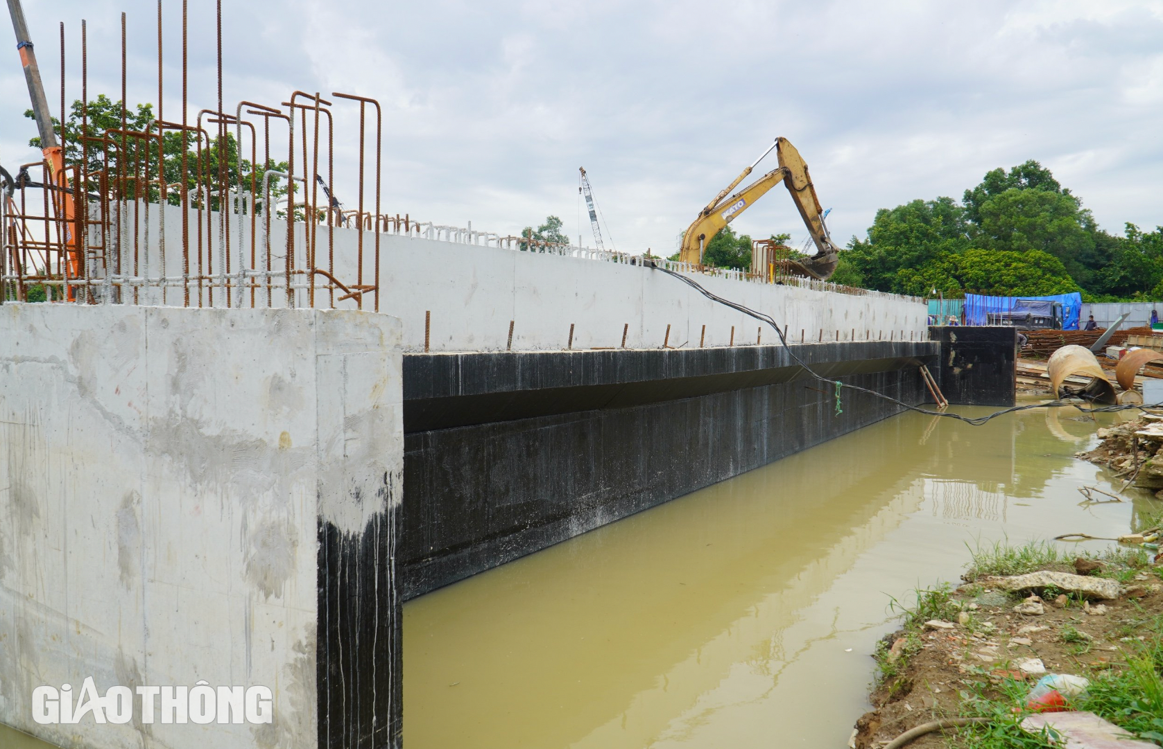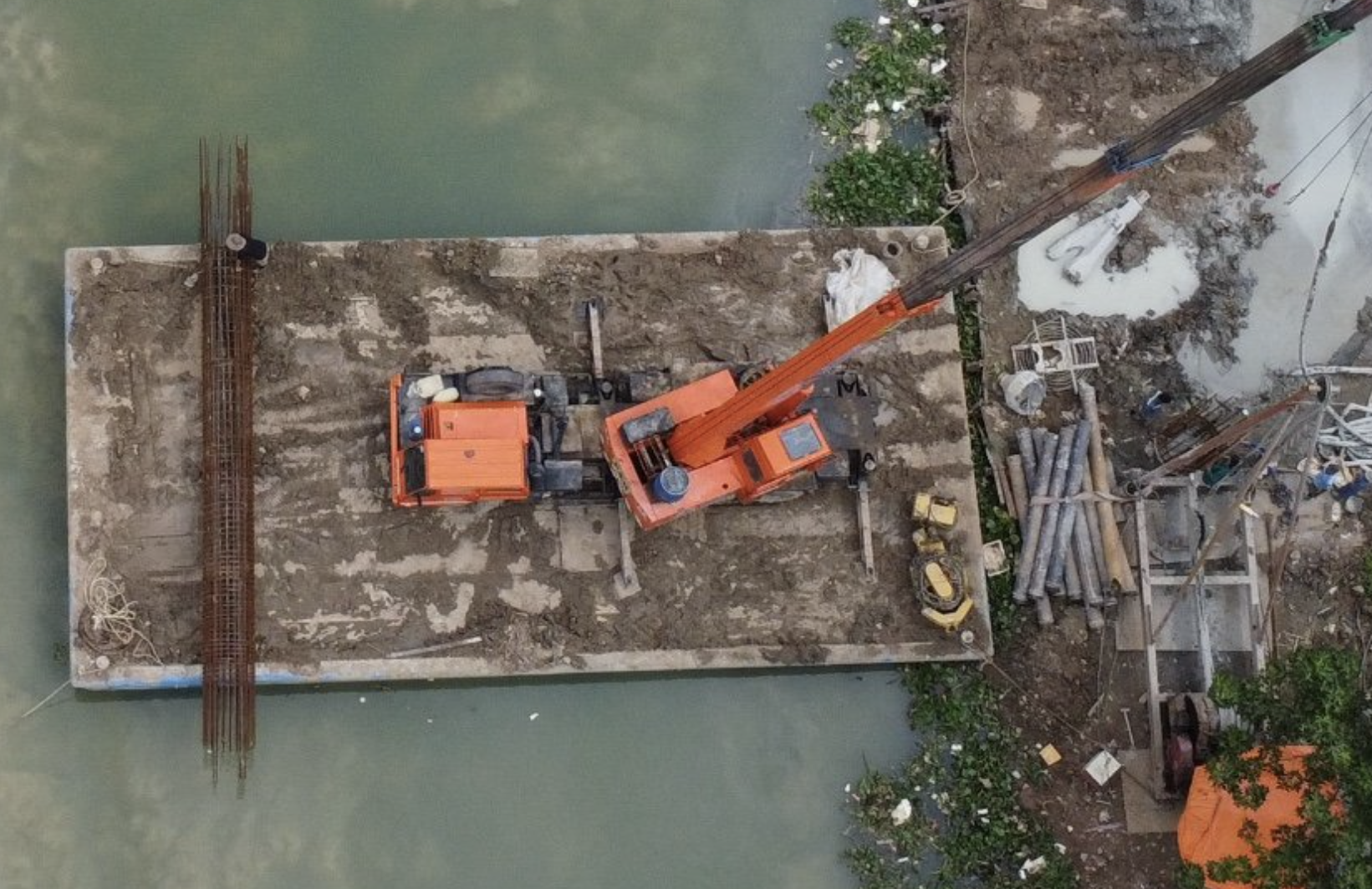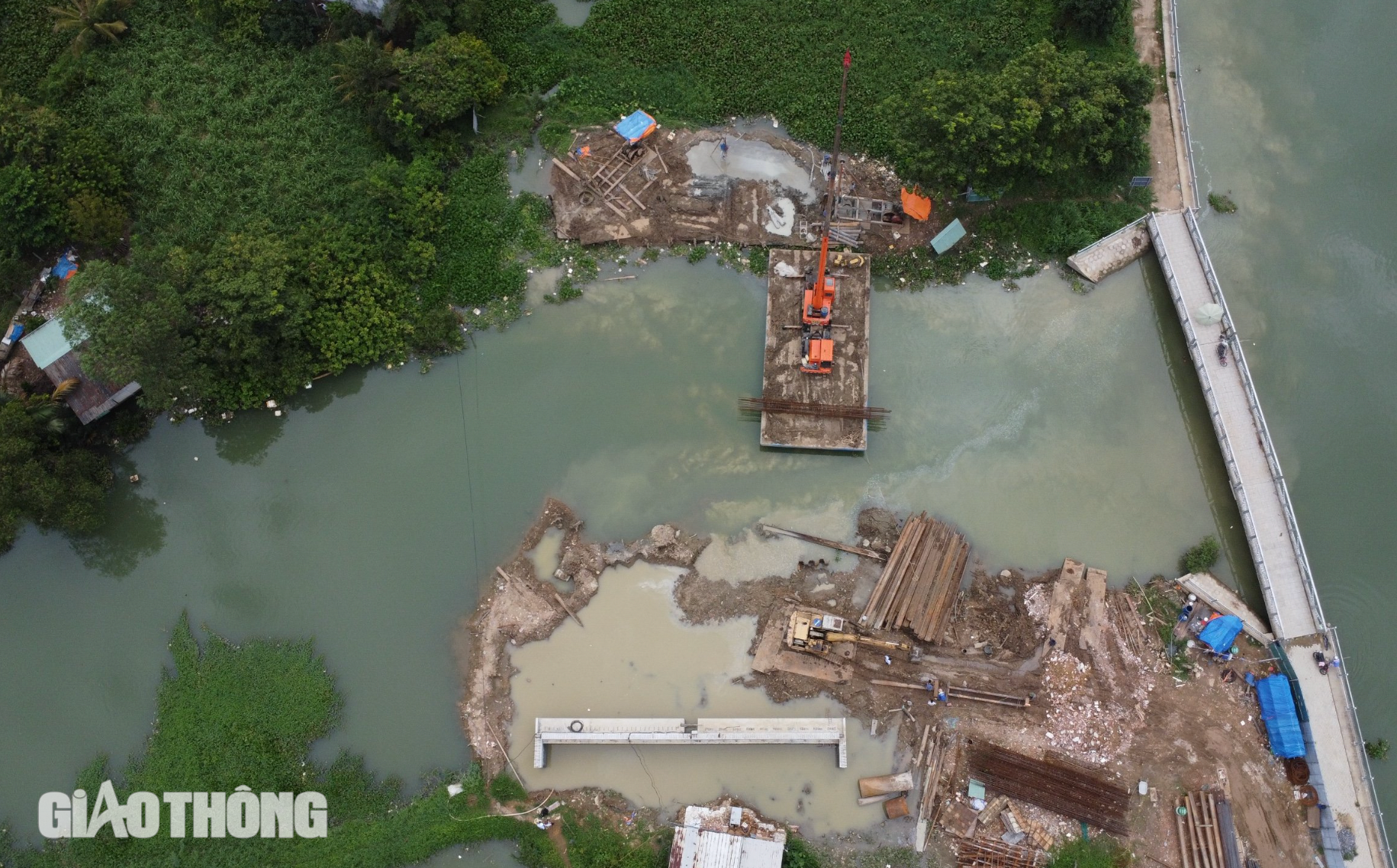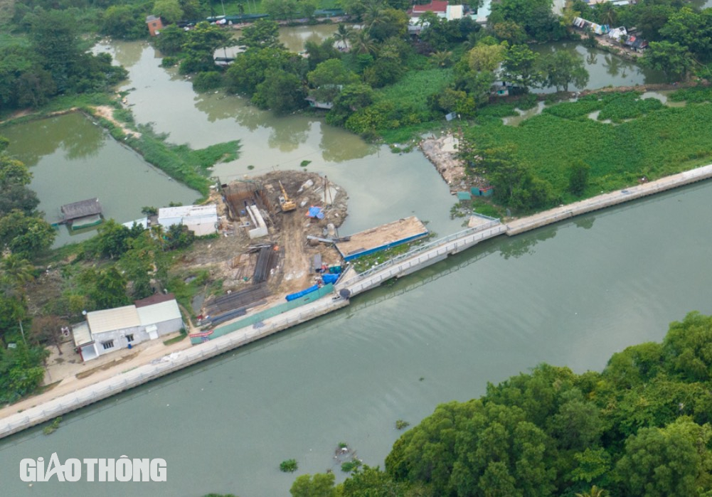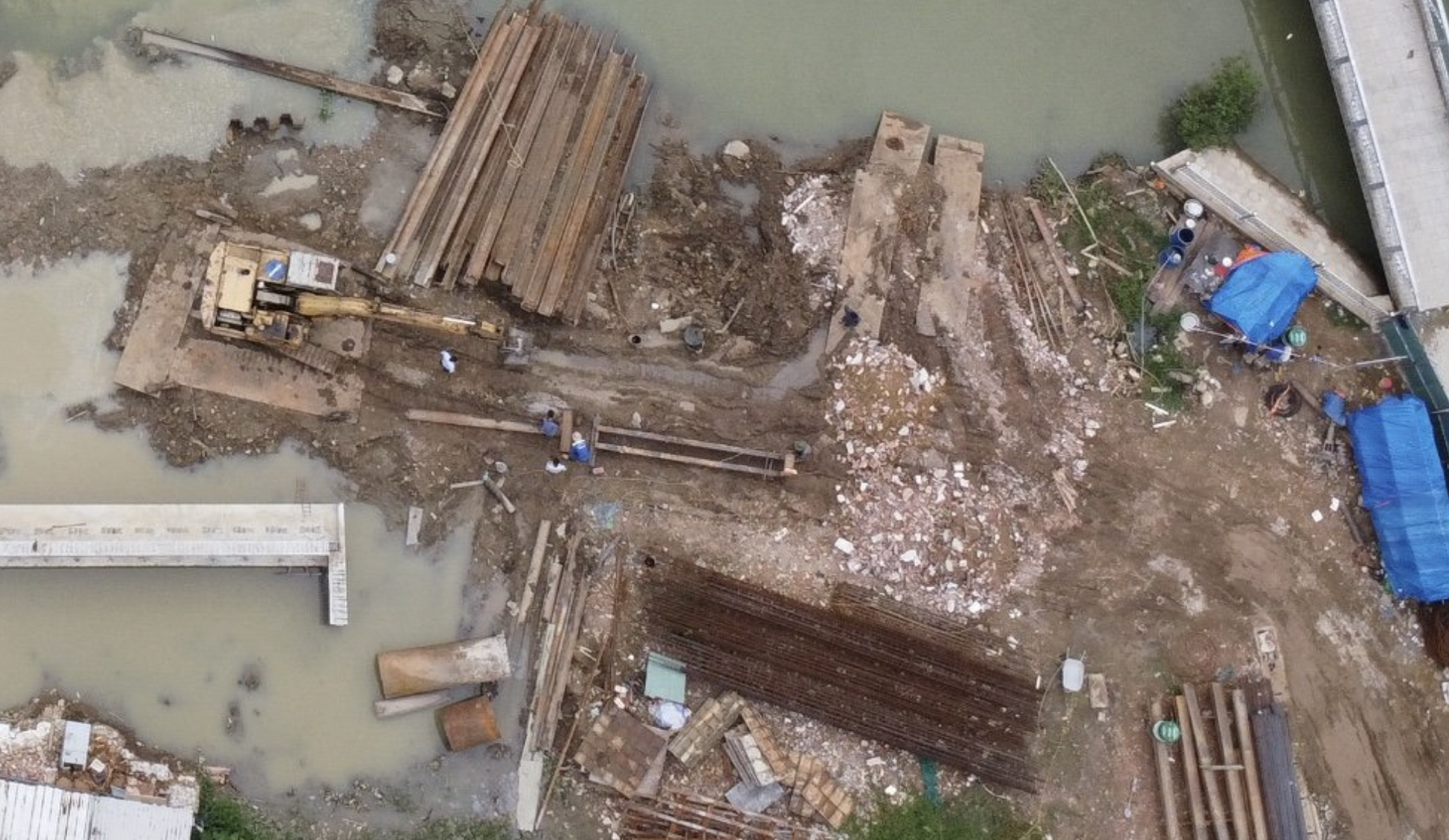 Cầu Chìm Tàu đang thuận lợi nhất về mặt bằng nên hàng chục công nhân, kỹ sư, máy móc hoạt động liên tục từ sáng đến đêm. Nhà thầu cũng tập kết vật liệu, vật tư, máy móc, nhân sự sẵn tại công trường để thi công cuốn chiếu những nơi có mặt bằng.