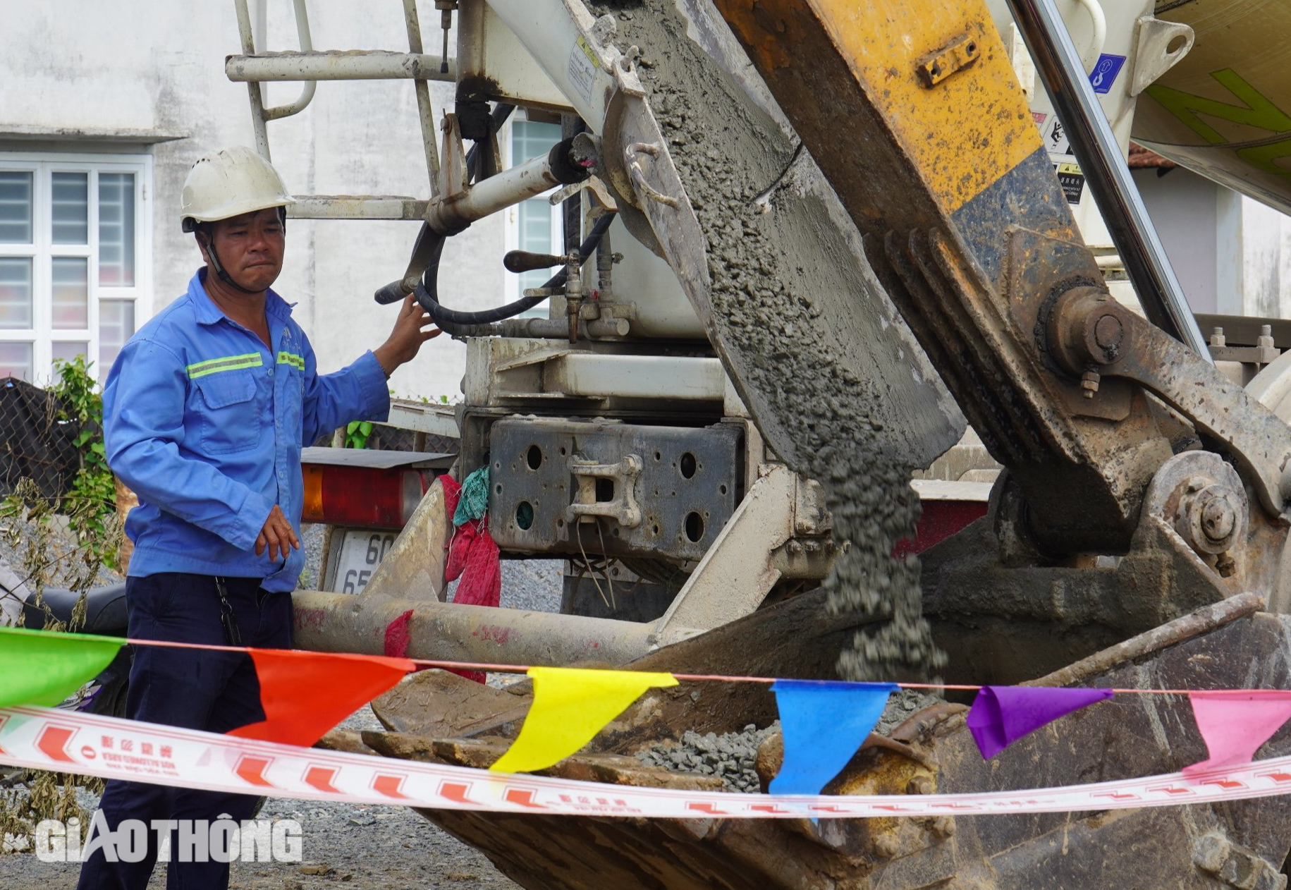Anh Nguyễn Văn Nam, công nhân cho biết anh đến công trường làm việc đã nửa năm. Các anh em công nhân chia làm từng nhóm 3 - 5 người để thi công dàn trải. Khi thời tiết thuận lợi sẽ làm bê tông xi măng, thi công một số hạng mục.