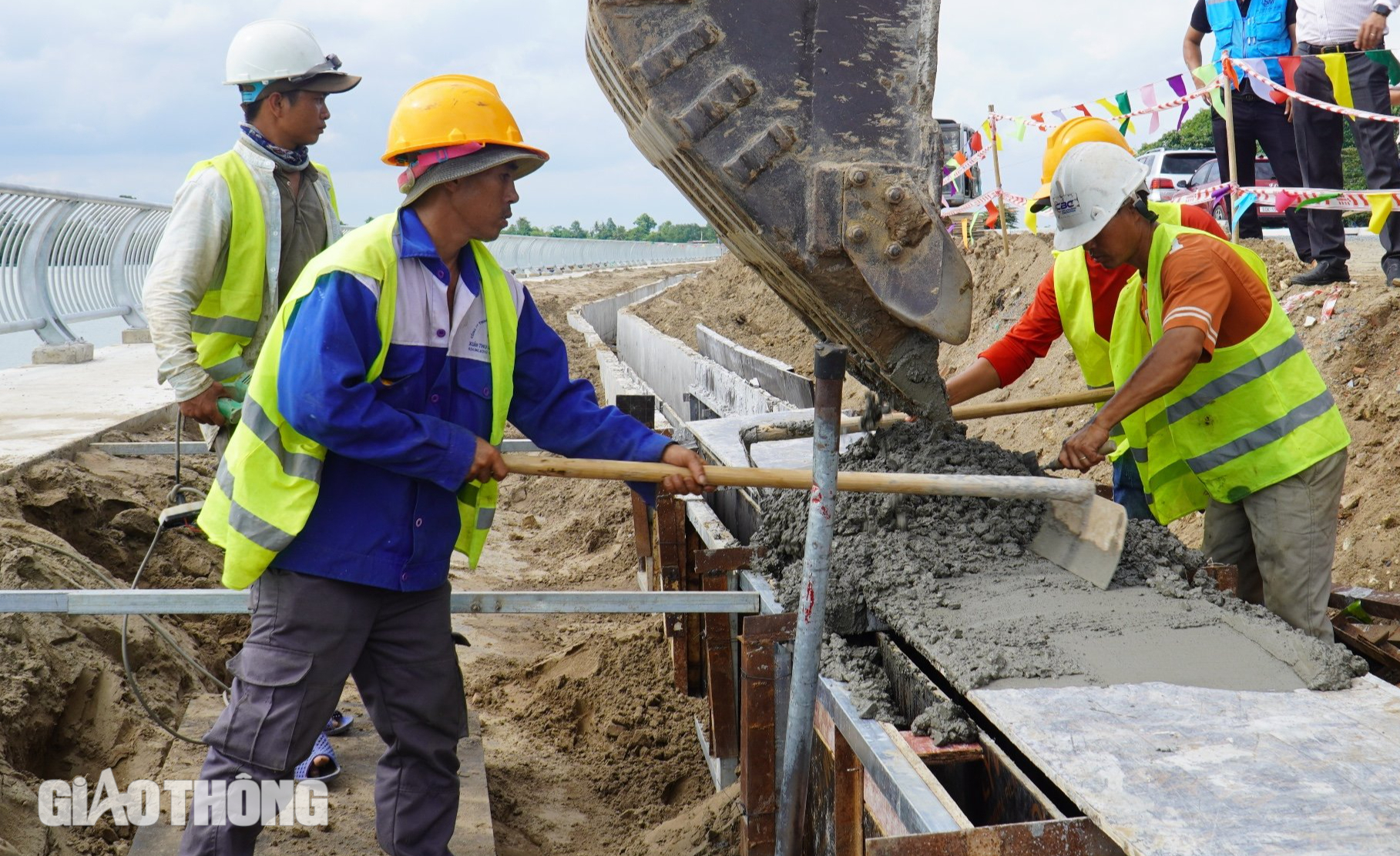 Còn ở cầu Rạch Gió, công nhân cũng tập trung thi công bệ, thân mố cầu, cốt thép, ván khuôn, cọc khoan nhồi. Dự kiến cầu Rạch Gió cũng về đích trong quý I/2025.