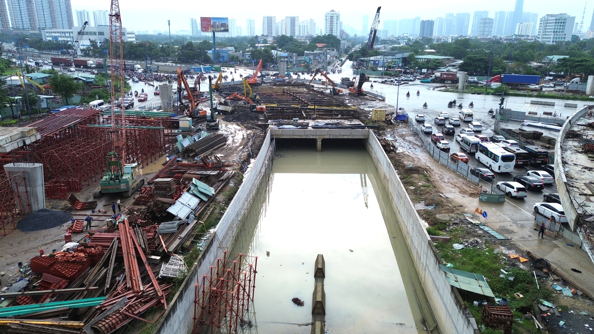 Đối với hạng mục hầm chui HC1-02 (gói XL6) trên trục Mai Chí Thọ, hiện phần thô đã cơ bản hoàn thiện, các khoang hầm lộ rõ kết cấu trên toàn tuyến dài 760m, quy mô bốn làn xe hai chiều. Hạng mục đạt khoảng 75% khối lượng, mục tiêu tiến độ: Hoàn thành và đưa vào khai thác trước ngày 15/1/2026.