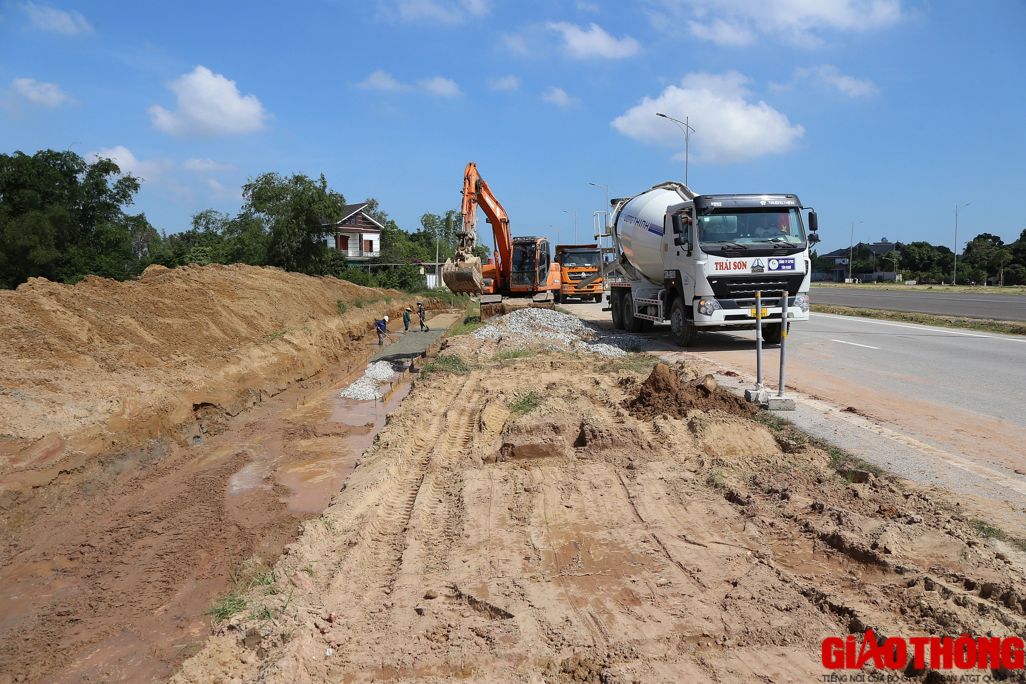 Trong khi đó, Công ty TNHH Tân Hưng thi công hơn 1,2km. Hiện nhà thầu này đã thảm bê tông nhựa lớp 1 được khoảng 60%. Ngoài ra, phần rãnh thoát nước dọc và hào kỹ thuật dọc cũng đã thi công xong, hiện nhà thầu đang tập trung thi công phần vỉa hè.