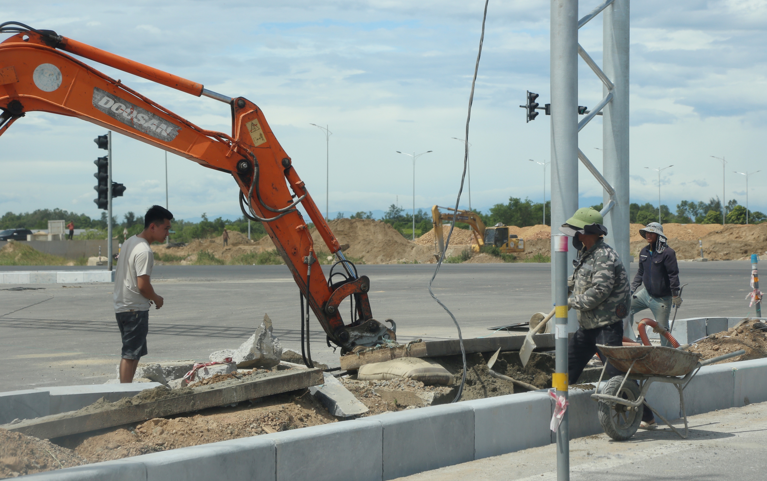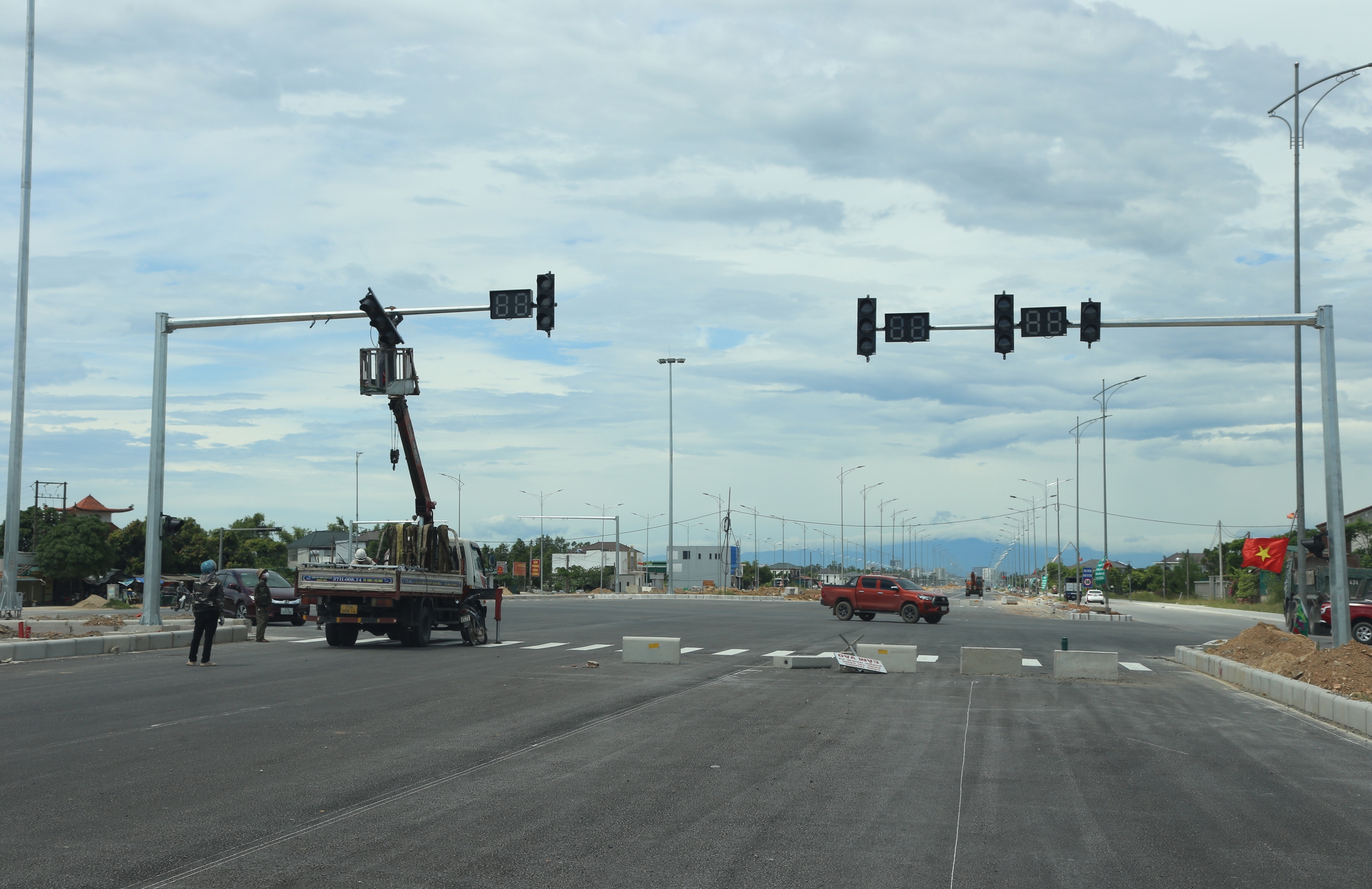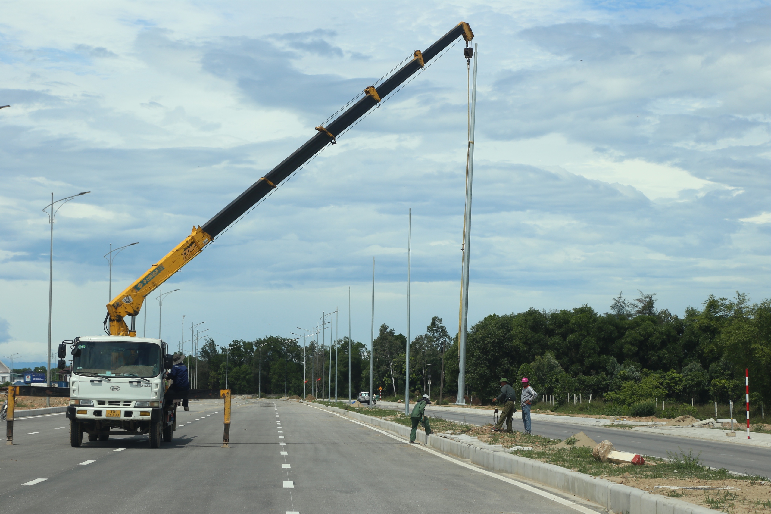 Hiện các công nhân đang tập trung hoàn thiện hệ các hạng mục phụ như điện chiếu sáng, vỉa hè hai bên tuyến; san lấp đất cho dải phân cách giữa đường và hệ thống an toàn giao thông trên tuyến như: vạch kẻ đường, hệ thống đèn giao thông.