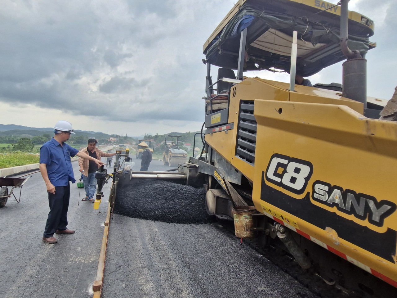 Đến nay, các nhà thầu đang đẩy nhanh thi công hạng mục thảm mặt đường bê tông nhựa, sẵn sàng đưa dự án về đích trước thời hạn.