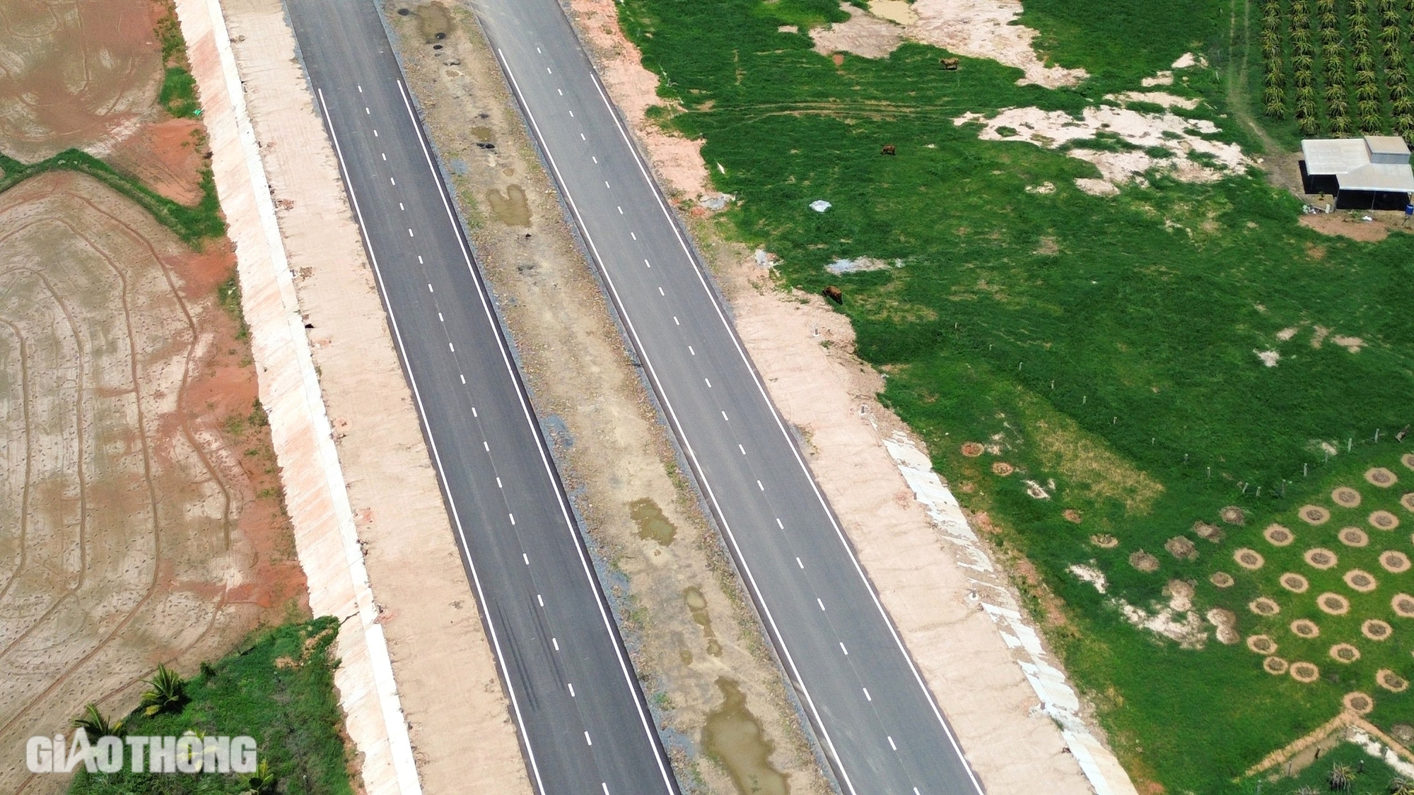 Dọc hai bên tuyến là những trang trại, vườn thanh long ở Hàm Thuận Nam - thủ phủ thanh long của tỉnh Bình Thuận.