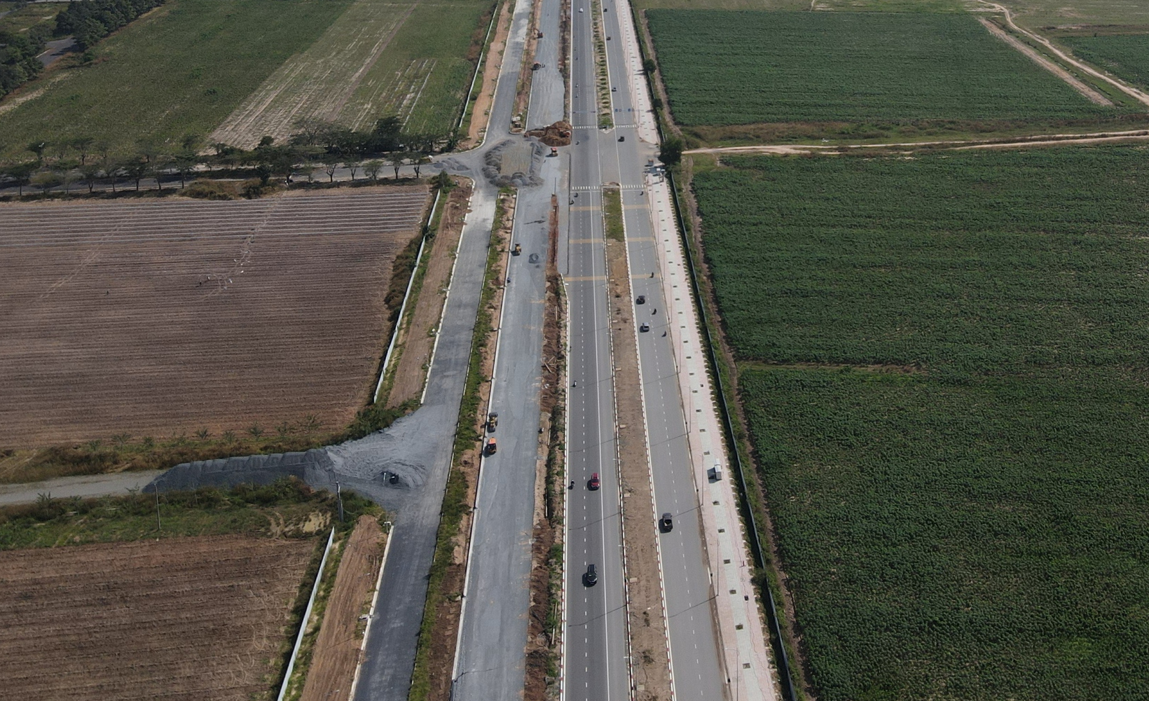 Đoạn này đường đã thảm nhựa, sơn vạch kẻ đường, có hệ thống biển báo và thẳng tắp kết nối cùng nhiều trục đường xương sống. Một số khu vực gần nút giao thì mới thảm nhựa và sắp tới sẽ triển khai các hạng mục kế tiếp.