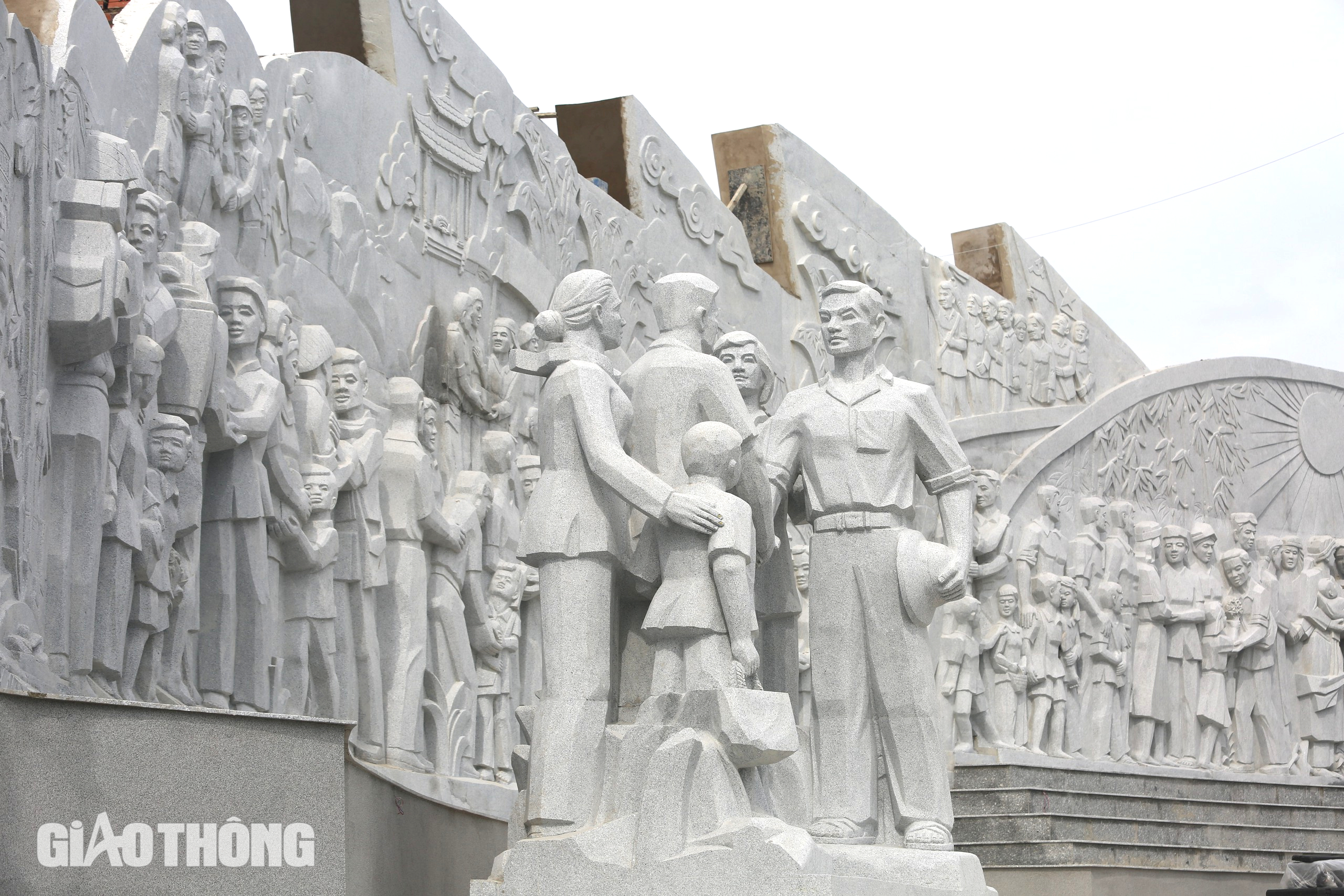 Bức phù điêu có hình cánh cung rộng khoảng 500m2 cũng được làm bằng đá khối granite. Hiện nay, tượng đài và bức phù điêu đã đạt hơn 98% khối lượng công việc. Đơn vị thi công đang hoàn thiện các hạng mục cuối cùng như vệ sinh, lắp đèn led...