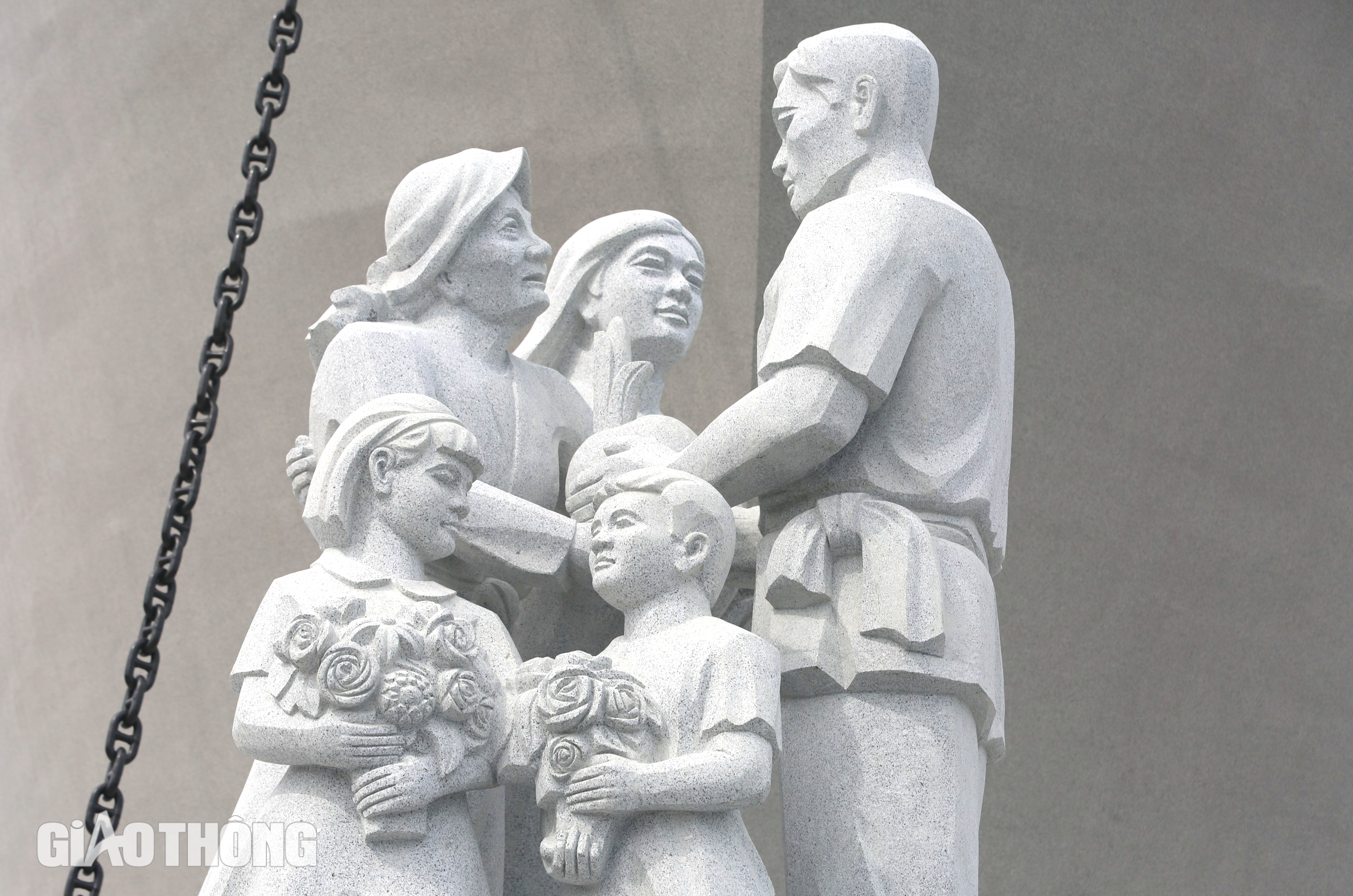Phía sau tượng đài con tàu là bức phù điêu có hình cánh cung rộng khoảng 500m2 cũng được làm bằng đá khối granite.