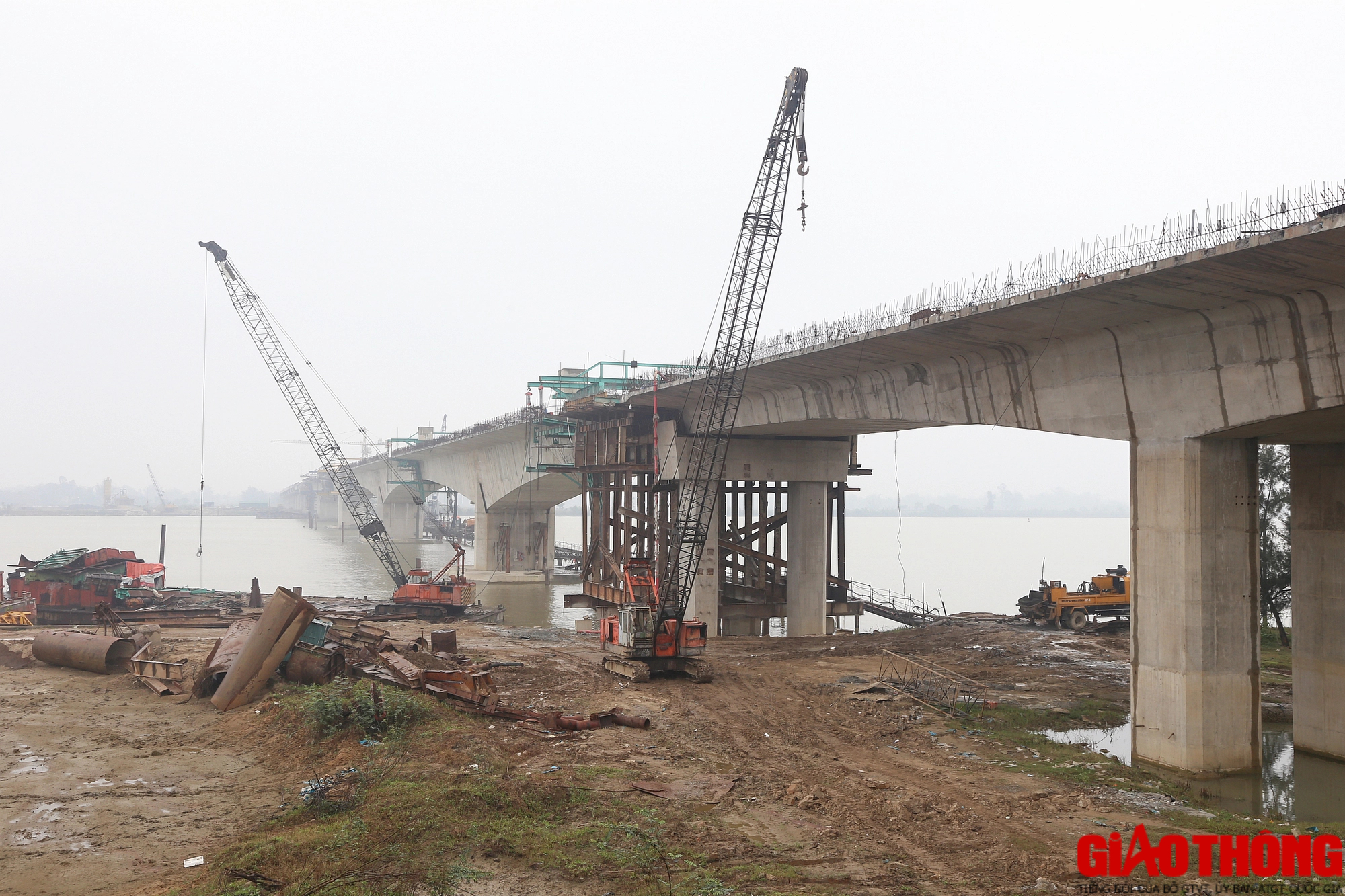 Sáng 30/12, trời mù và lạnh nhưng tại công trình cầu Hưng Đức, hàng trăm kỹ sư, công nhân cùng các máy móc, thiết bị hiện đại vẫn miệt mài thi đua lao động.