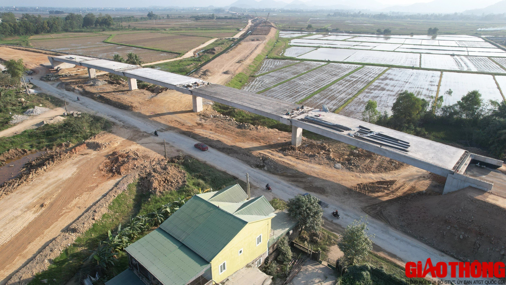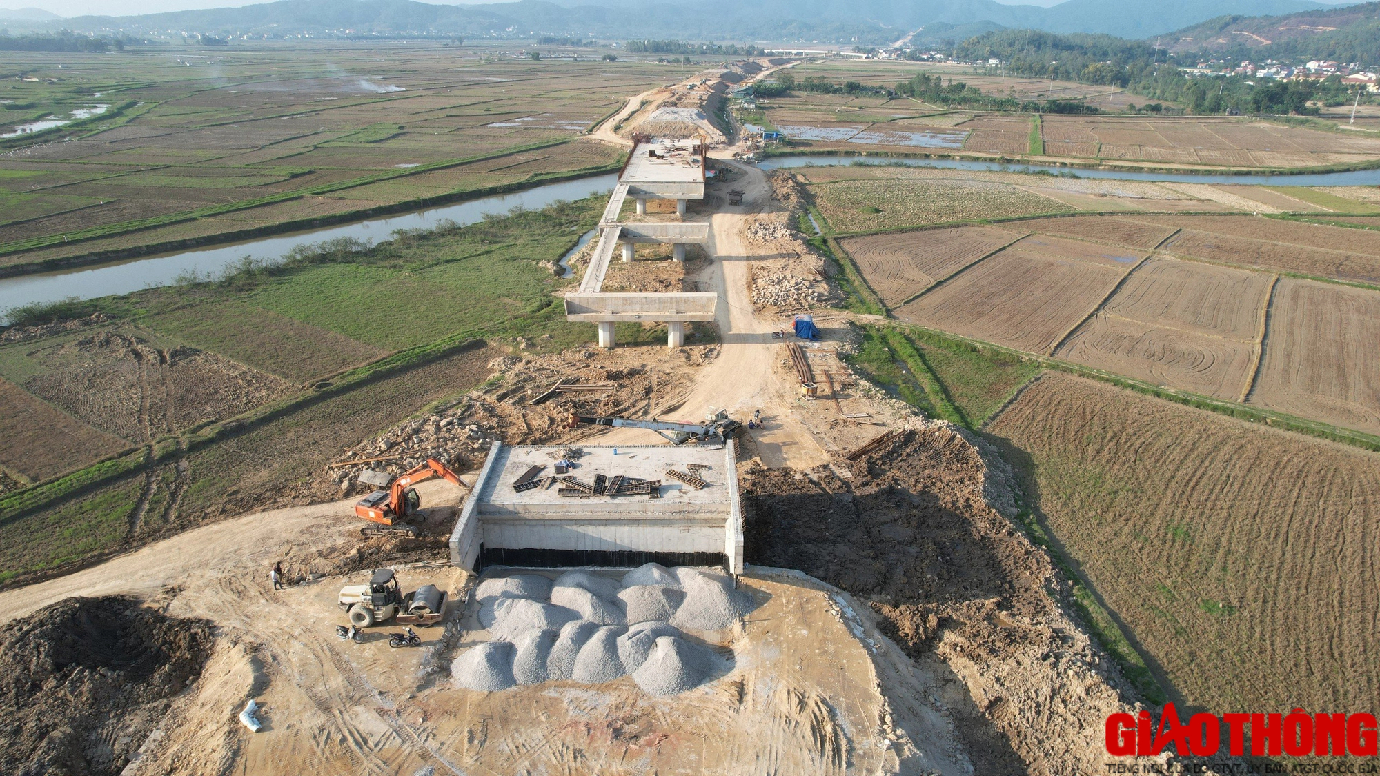 Đây là công trình đường găng tiến độ của Dự án Cao tốc Diễn Châu - Bãi Vọt nên các nhà thầu: Cienco 4, Hòa Hiệp, Thái Yên, Đại Hiệp… đều huy động tối đa nhân lực, máy móc dồn lực thi công xuyên lễ, Tết.