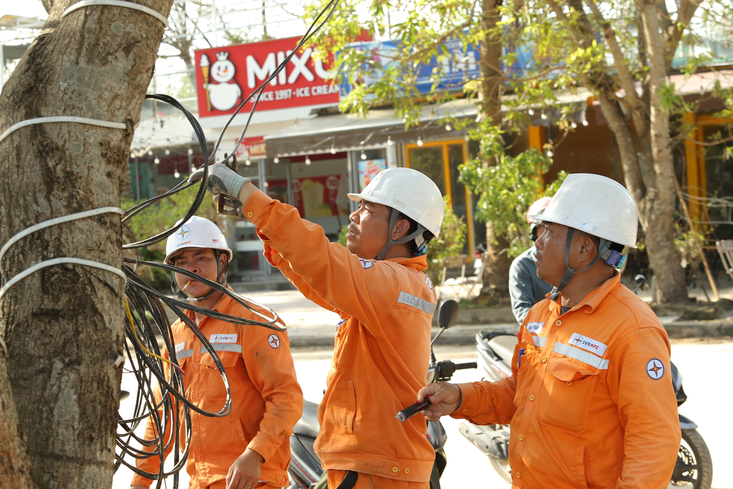 Thành viên khác của tổ là anh Hoàng Thanh Lương cho hay, ngoài làm xuyên đêm, những ngày qua thời tiết ở Cửa Lò mưa nắng thất thường khiến anh em mệt mỏi hơn. Bù lại, thợ điện đi đến đâu cũng nhận được sự quan tâm, hỗ trợ của người dân.