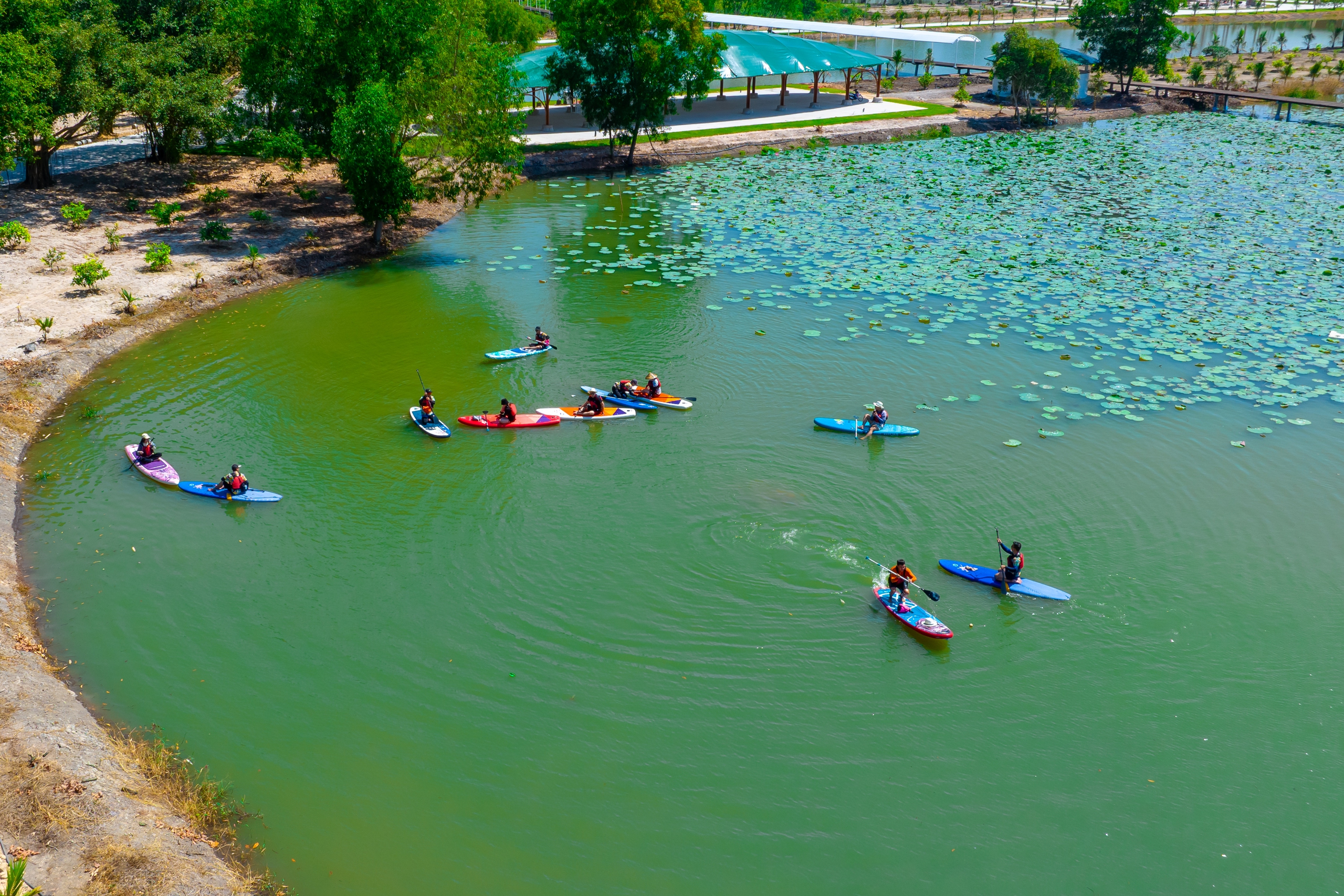 Du khách chèo kayak trong công viên chuyên đề Sơn Tiên Amazing World