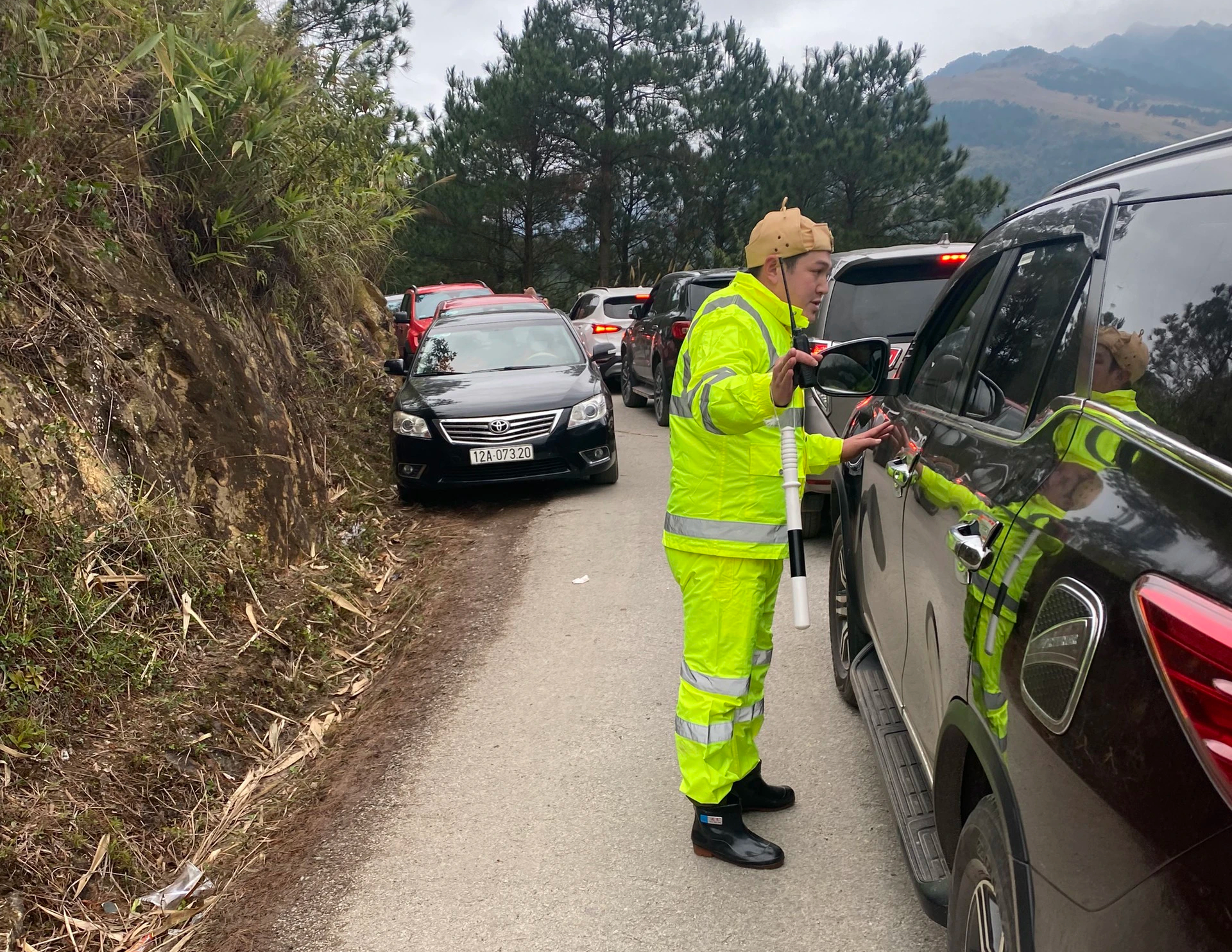 Trước thực trạng trên, ngay từ sáng sớm, Đội CSGT Công an huyện Lộc Bình đã triển khai lực lượng phân luồng, bảo đảm ATGT tại tuyến đường dẫn lên đỉnh Mẫu Sơn.