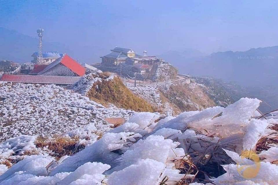 Trong ngày 23/1, băng tuyết phủ kín đỉnh núi Mẫu Sơn, Lạng Sơn. Ảnh FB.
