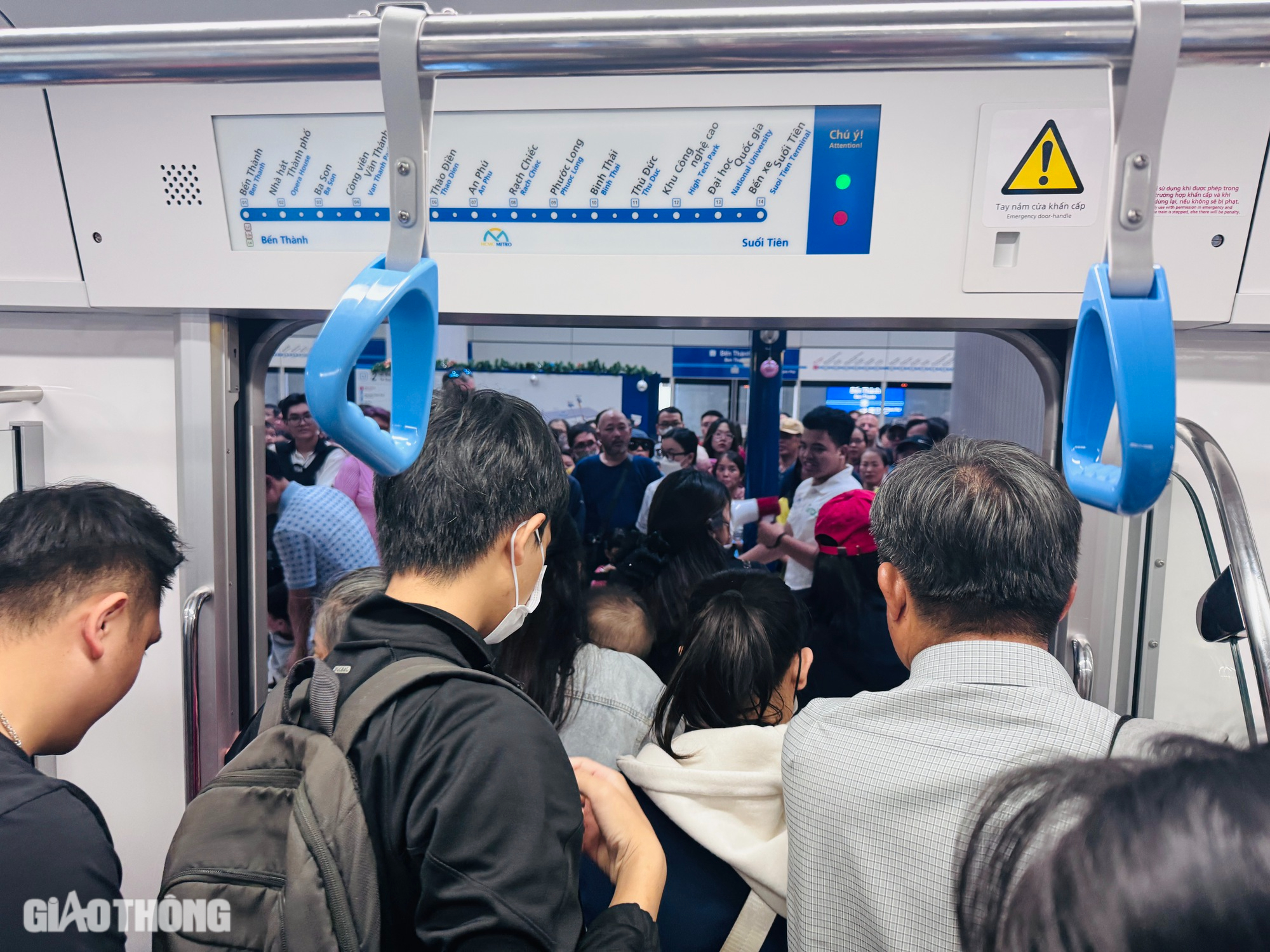Trong 6 ngày vận hành (từ 22/12 đến 27/12), tuyến metro số 1 đã đón 531.705 lượt khách. Mỗi ngày, tuyến metro có 200 lượt tàu chạy, hoạt động từ 5h đến 22h30. Trong ảnh, rất đông trẻ nhỏ được người thân đưa đi trải nghiệm metro.