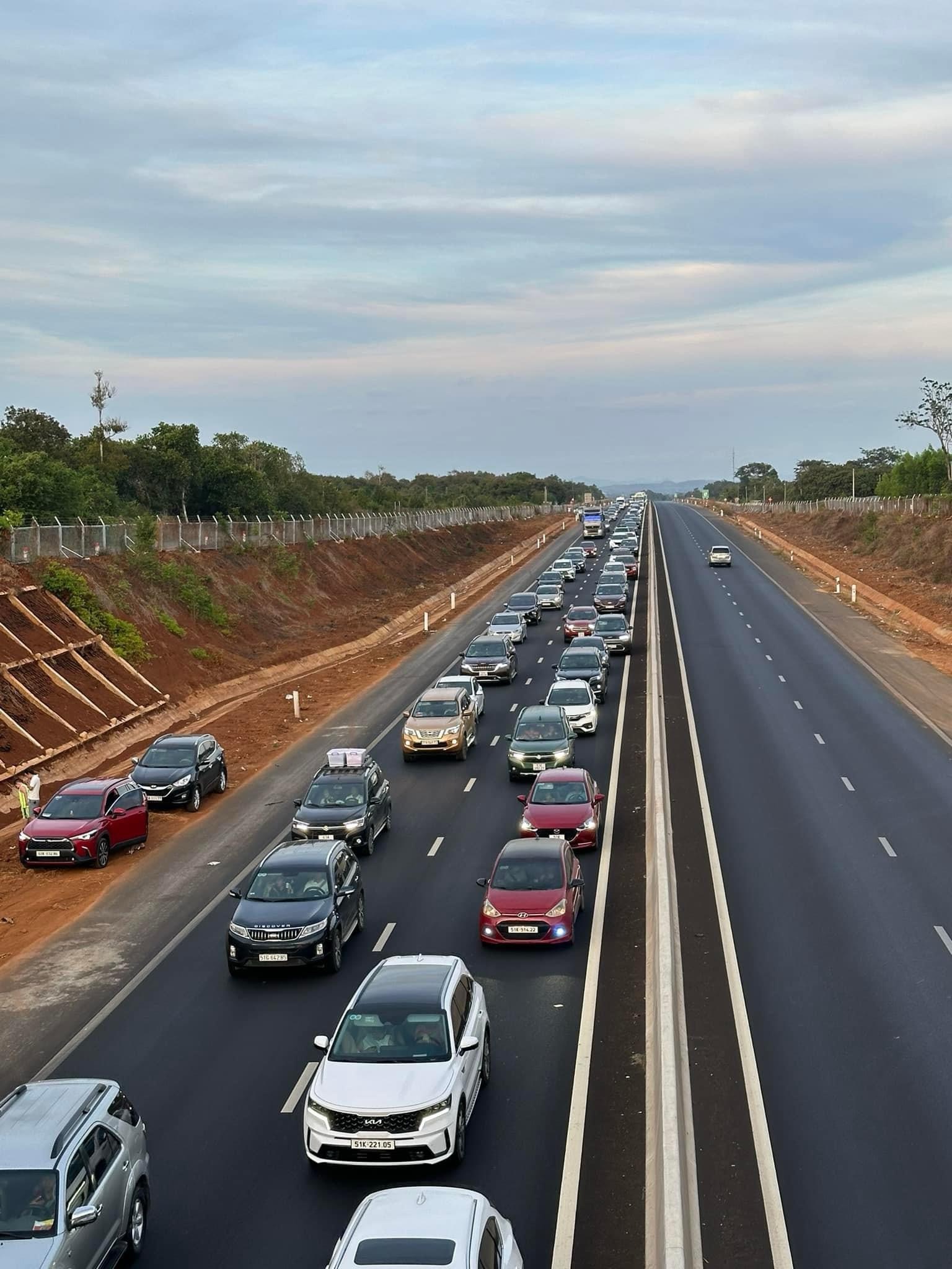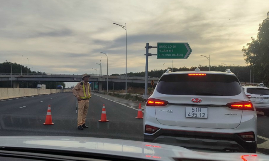 Vì ùn tắc nặng, đoạn cao tốc Phan Thiết - Dầu Giây ngay tại nút giao với Quốc lộ 56 (Long Khánh, Đồng Nai), lực lượng CSGT đã chặn các phương tiện yêu cầu di chuyển theo hướng khác, không tiếp tục đi vào cao tốc.