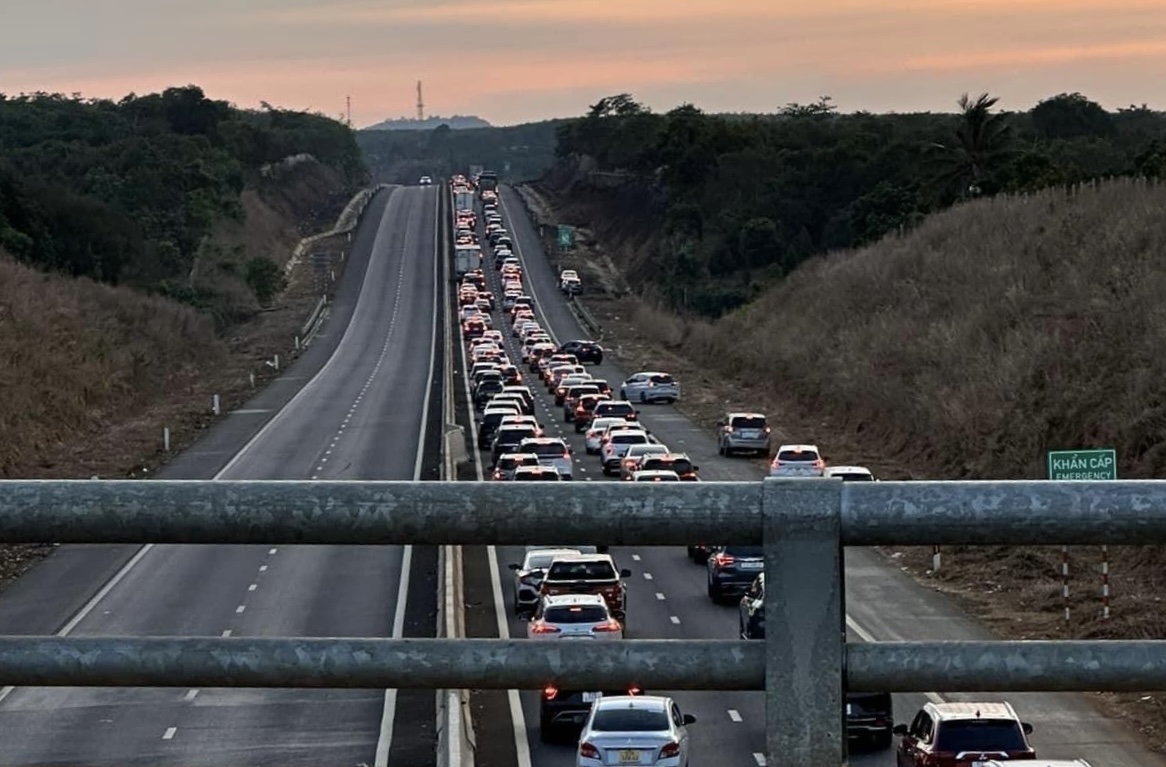 Chiều tối 30/4, lượng xe từ các tỉnh Lâm Đồng, Ninh Thuận, Bình Thuận, Khánh Hòa... nườm nượp di chuyển về lại Đồng Nai, TP.HCM, Bình Dương... sau kỳ nghỉ lễ khiến cao tốc Phan Thiết - Dầu Giây ùn tắc kéo dài nhiều đoạn.