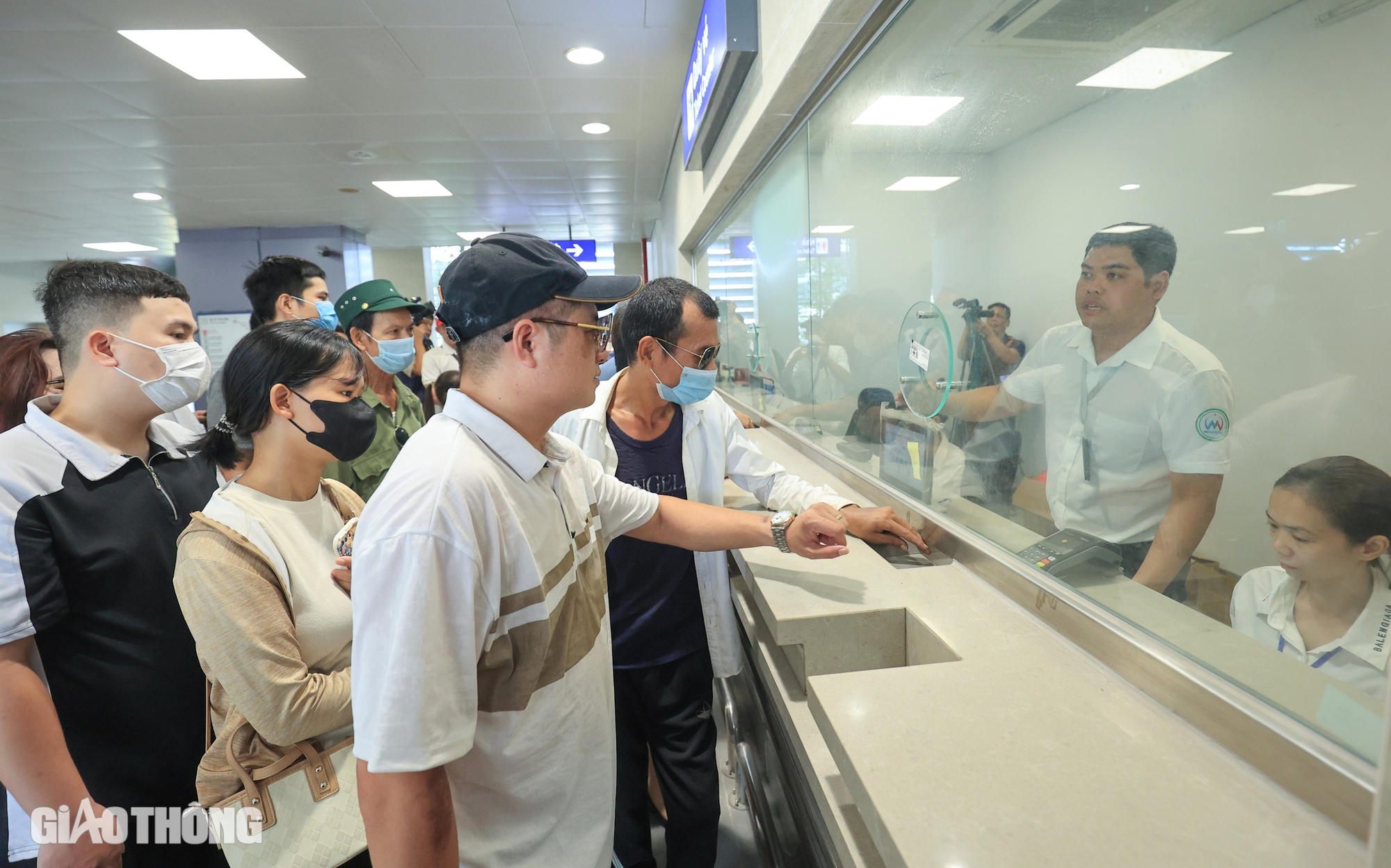 Theo ghi nhận của PV Báo Giao thông, các ga đầu (Nhổn), ga cuối (Cầu Giấy) tập trung lượng hành khách đông đúc nhất. Người dân xếp thành 2 hàng chờ lấy vé để trải nghiệm chuyến tàu đầu tiên.