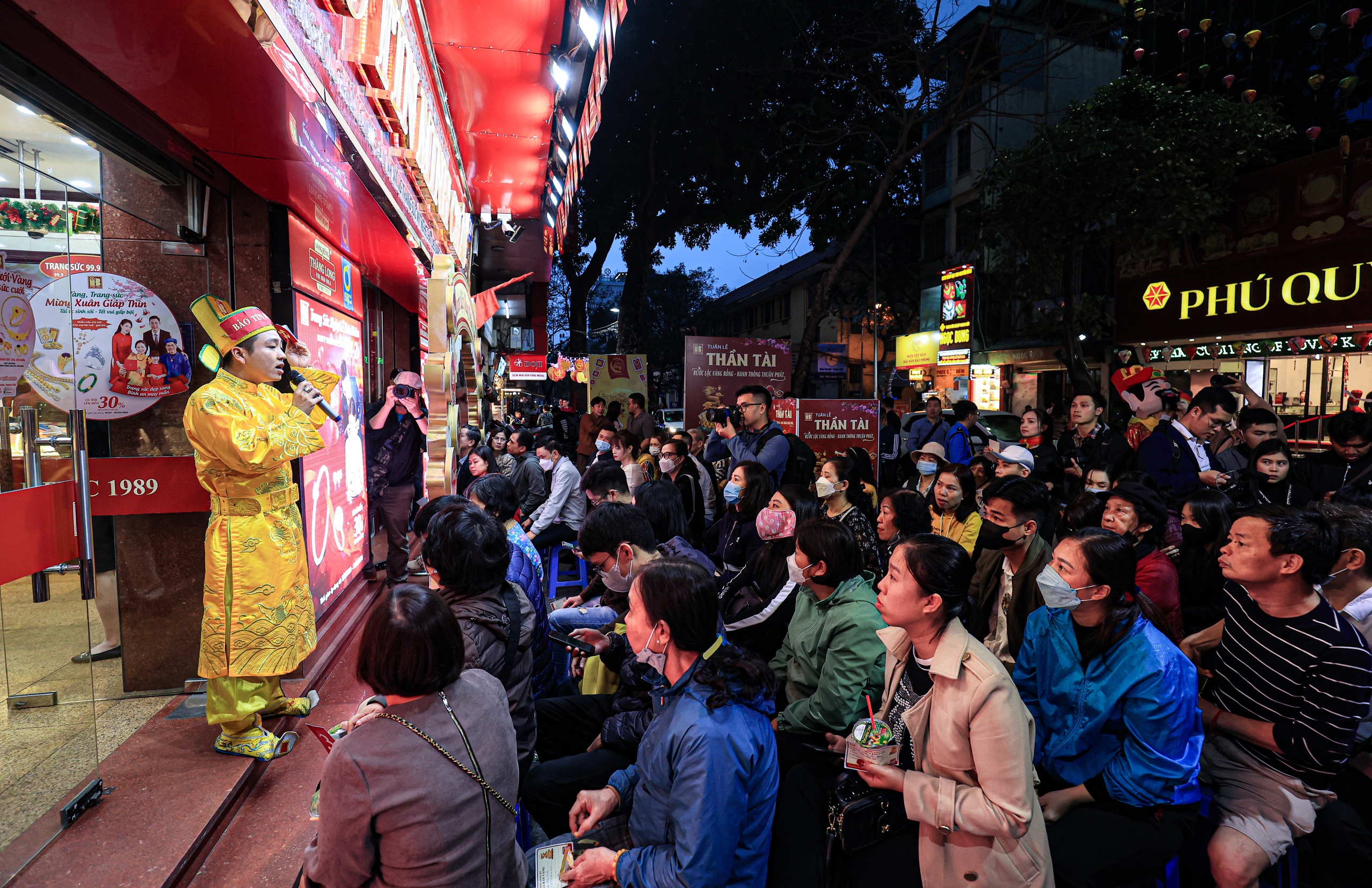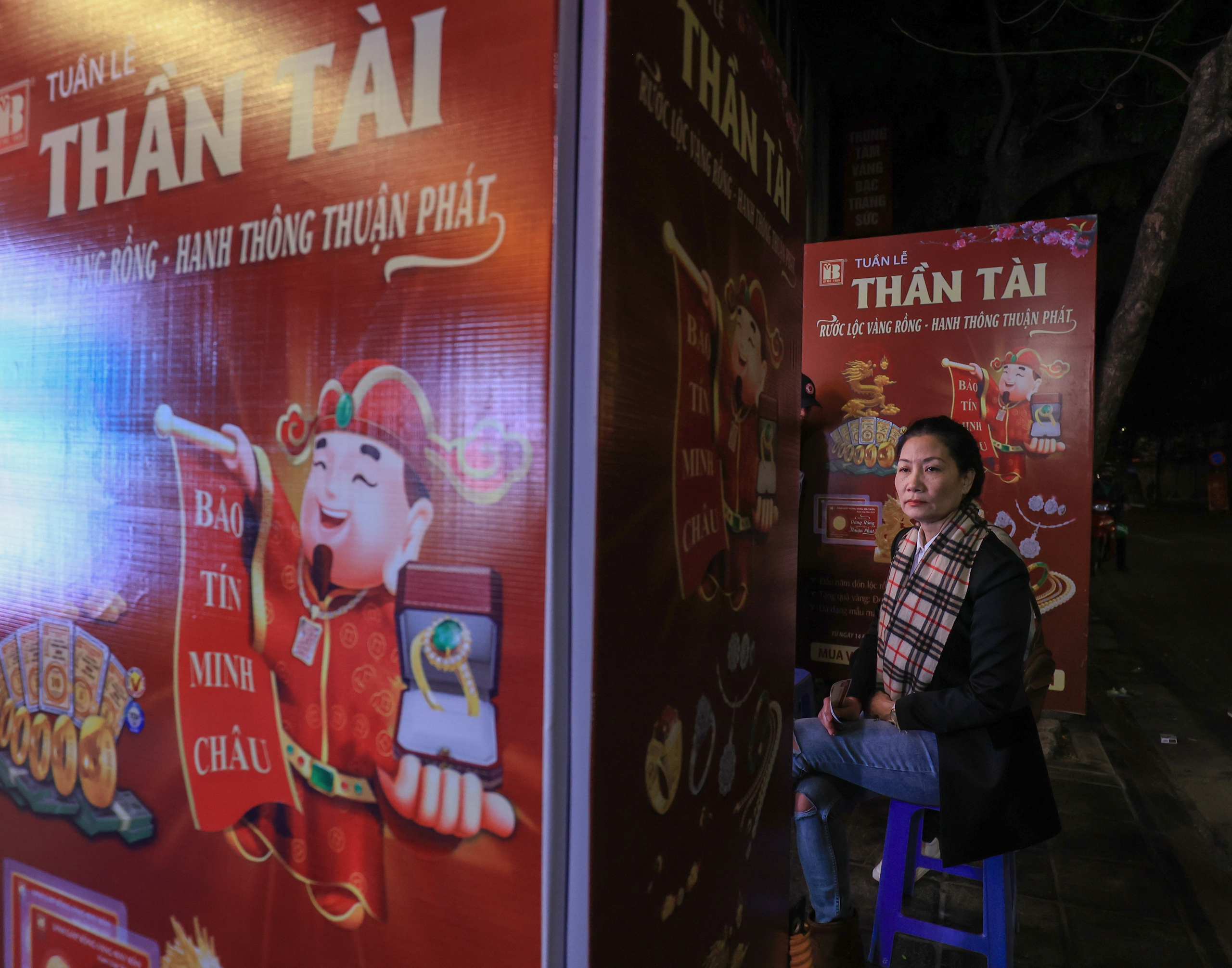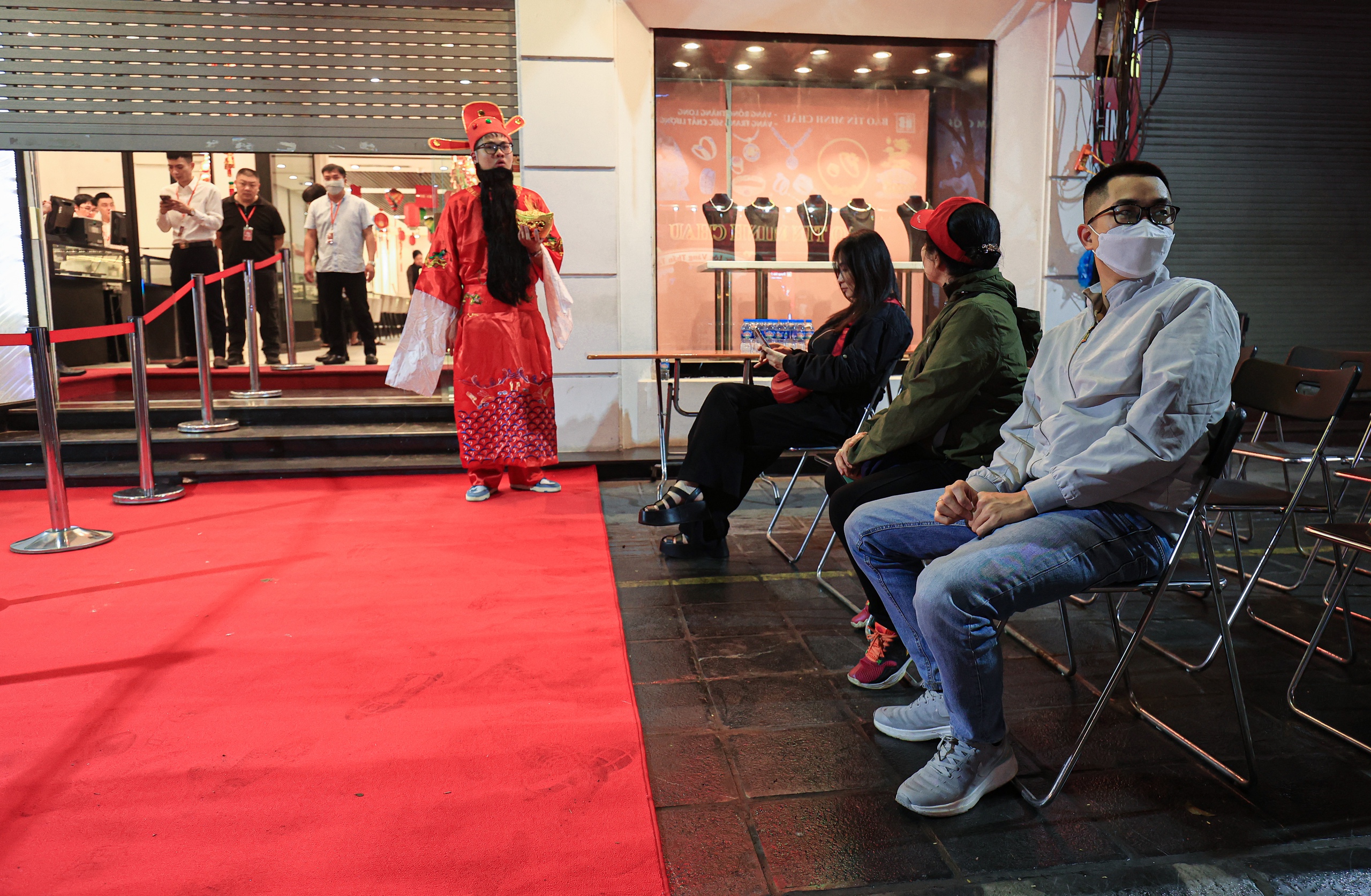 Trong khi đó, trước cửa một số tiệm vàng lớn trên phố Trần Nhân Tông vào sáng sớm ngày vía Thần Tài lại vắng vẻ, khác hẳn những năm trước.