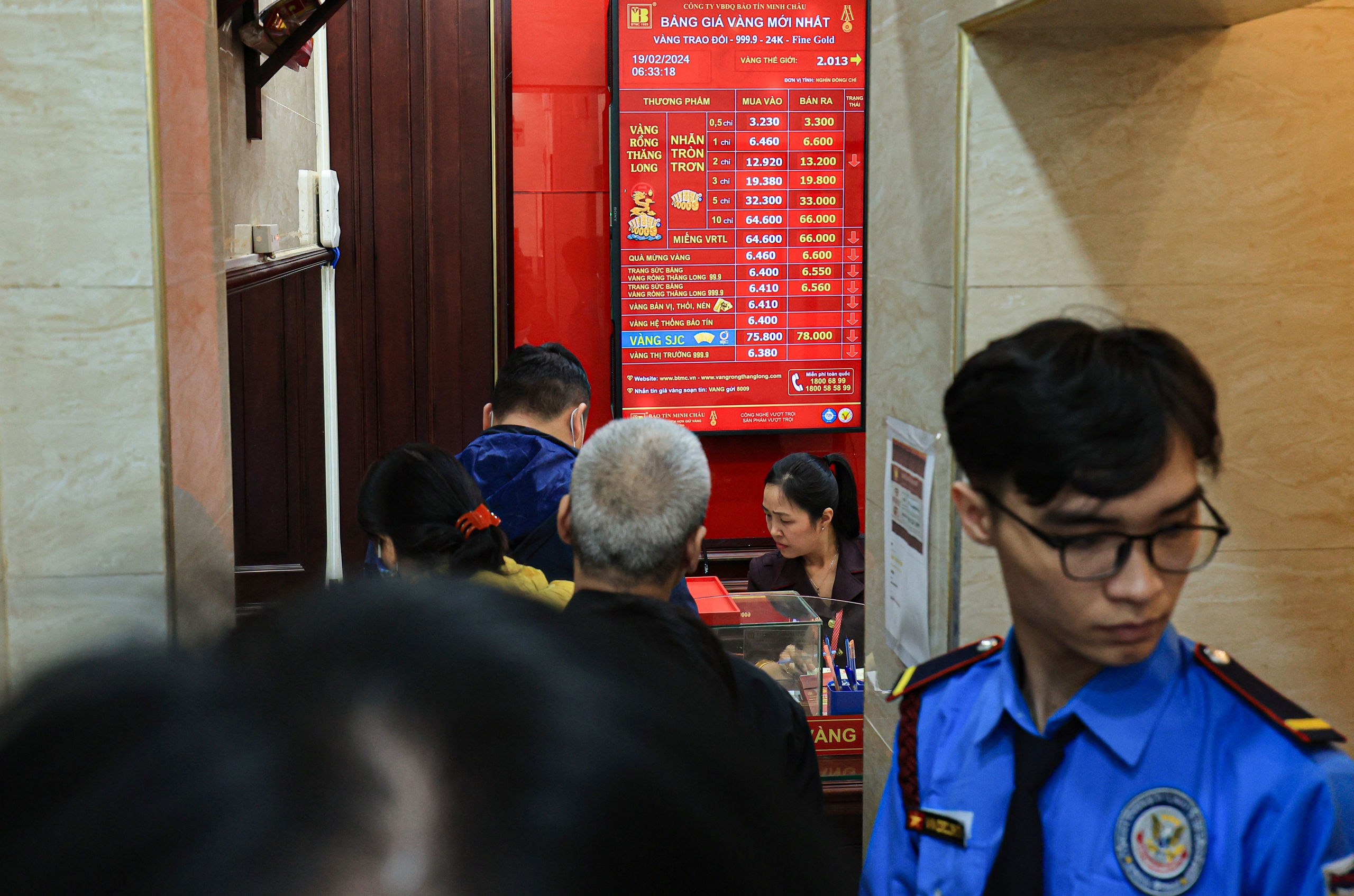 Do lượng người tới mua vàng nhiều nên các cửa hàng đã bố trí ghế ngồi cho các khách hàng.