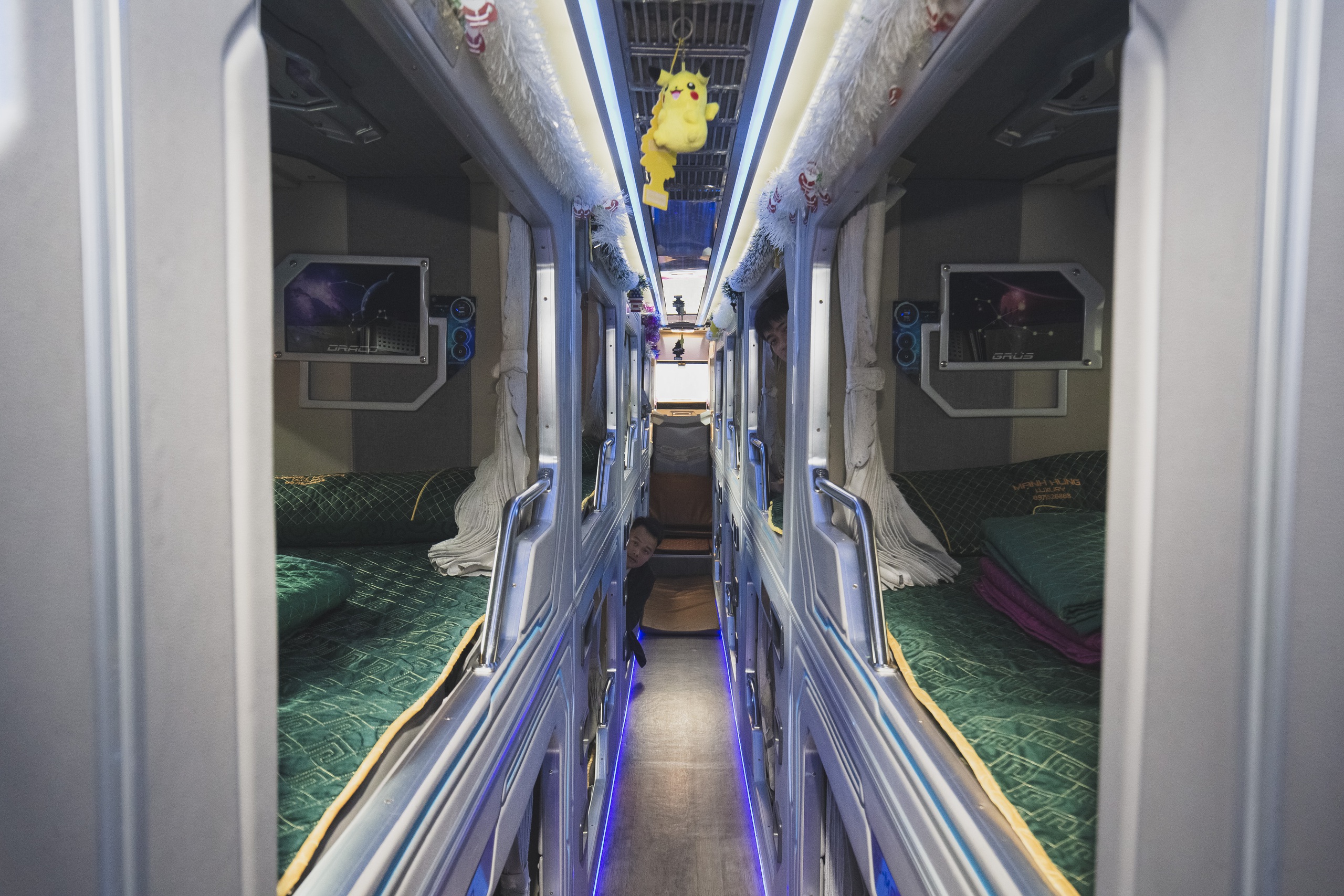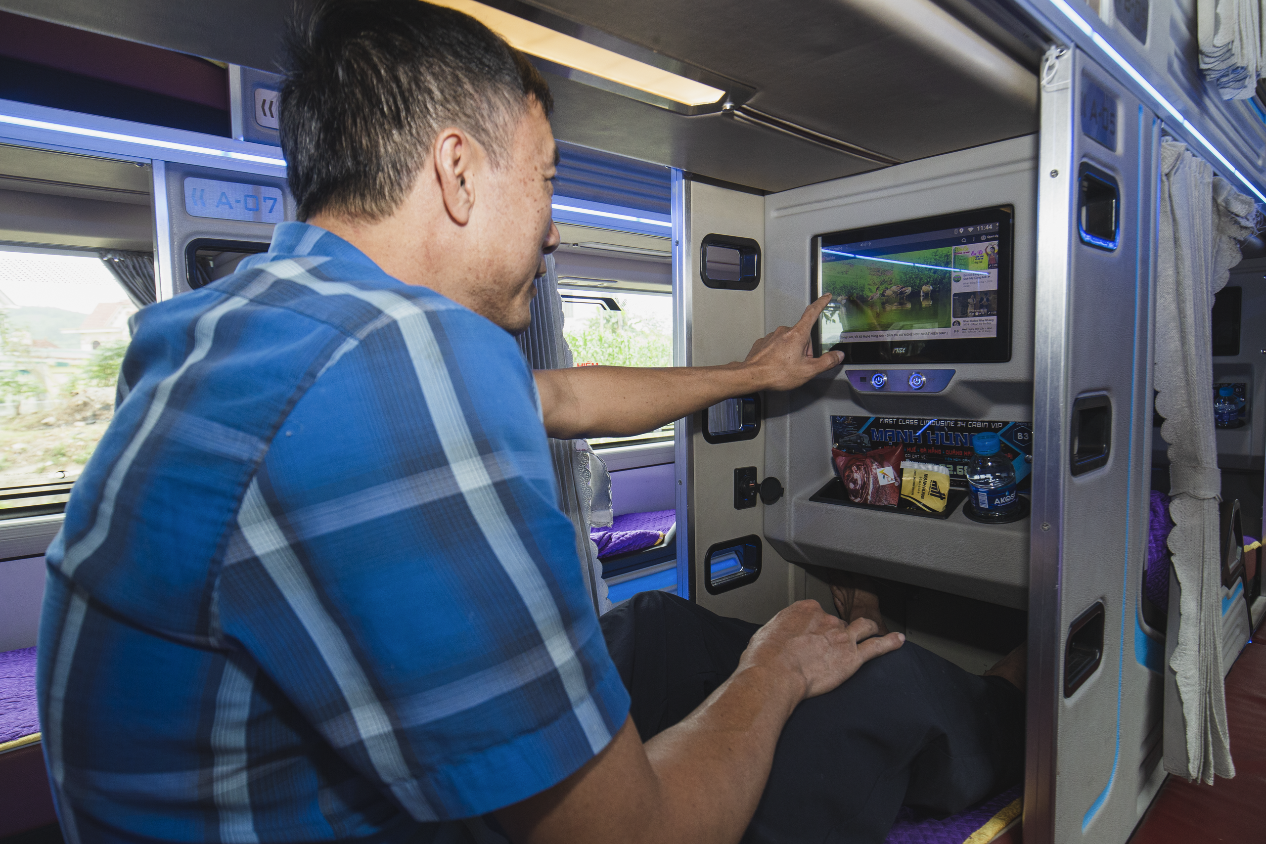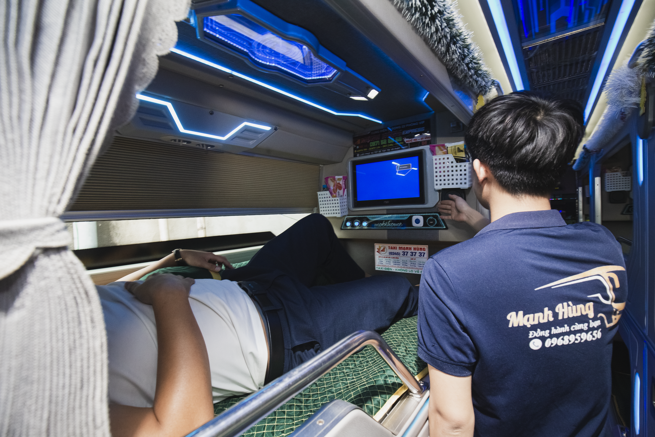 Trên mỗi giường nằm, phòng nằm đều được bố trí tivi màn hình led với hàng ngàn bộ phim hay, bài hát hot để hành khách có thể tận hưởng như ở trong chính ngôi nhà của mình, xua tan đi mọi mệt mỏi trên hành trình dài. Ngoài ra, trên xe còn có wifi miễn phí và bữa ăn phụ phục vụ hành khách.
