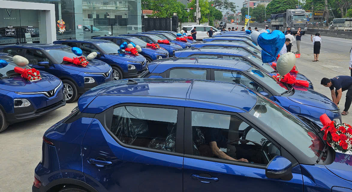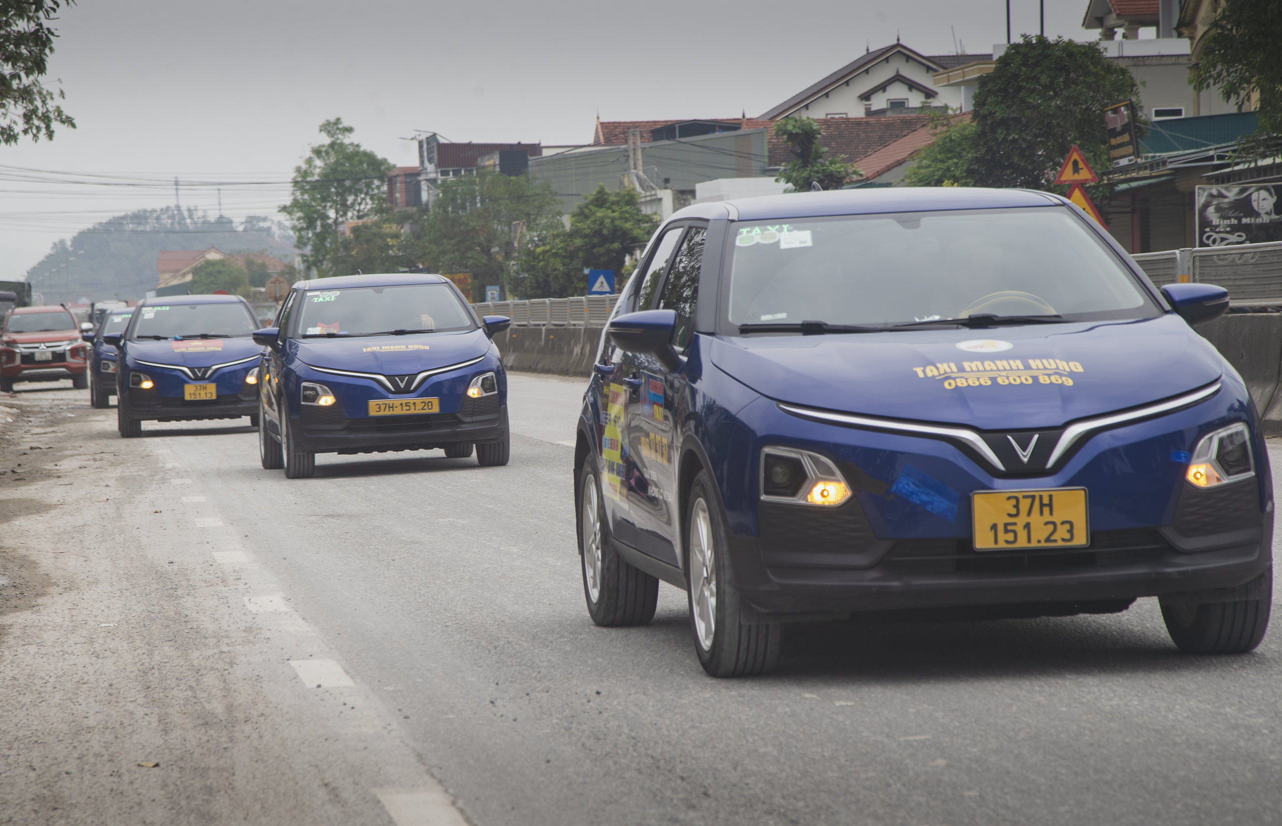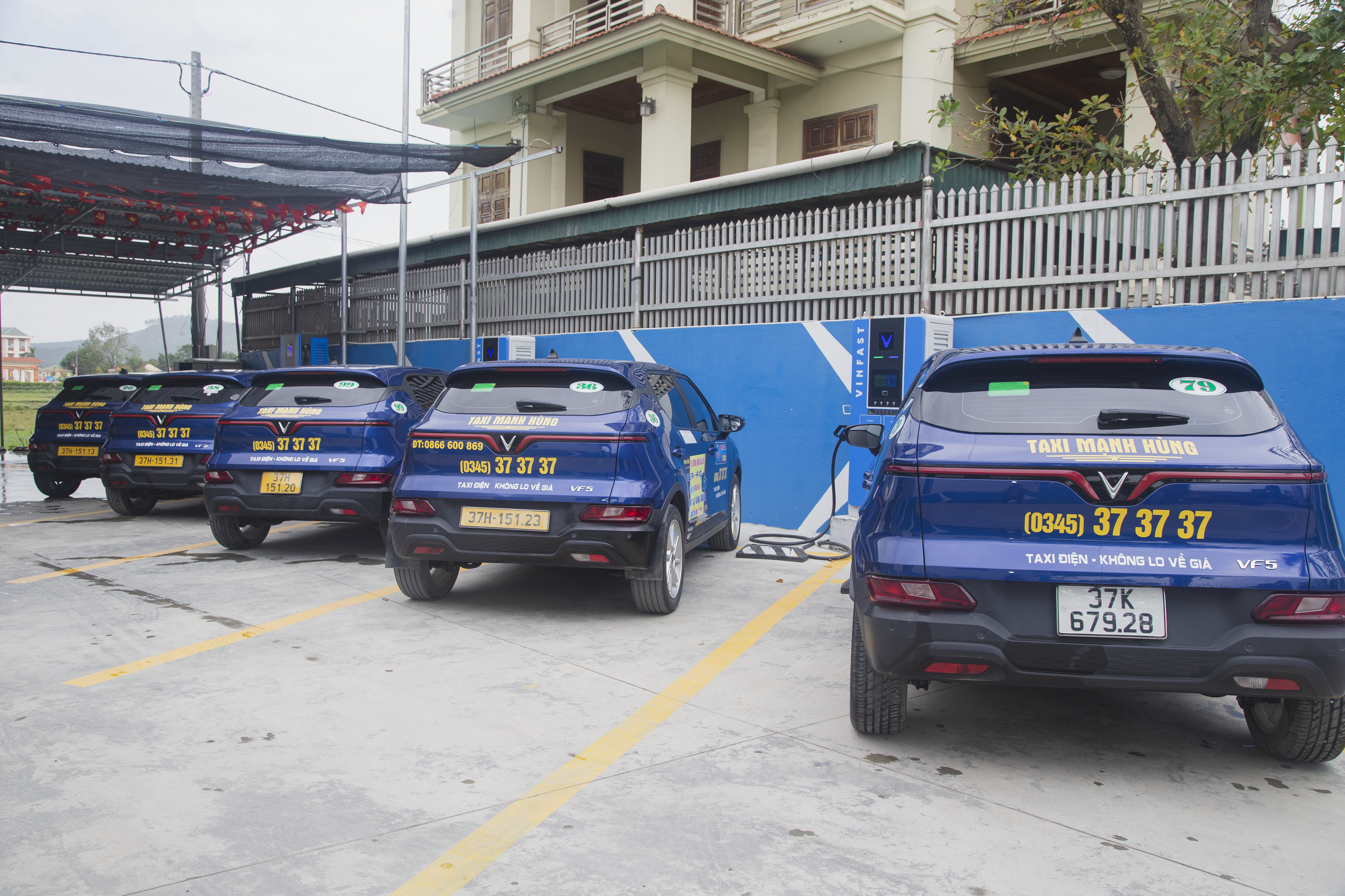 Theo quan sát, 100% xe taxi điện đều mới tinh và là dòng VinFast VF 5 của Tập đoàn Vingroup.