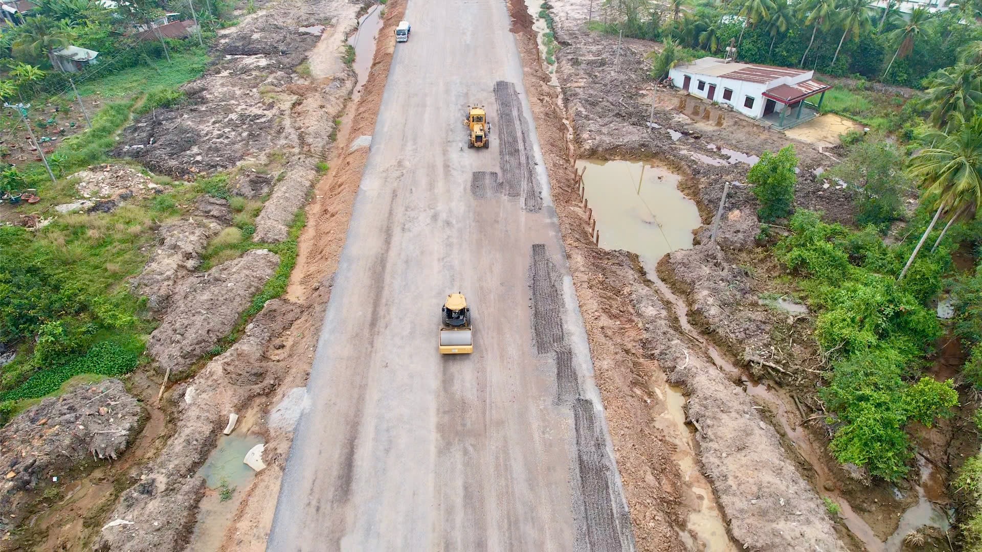 Trên nền đất từng thấp trũng đến nay dải nhựa đường đen nhám nay đã kéo dài hun hút, nền đường vươn cao, thẳng tắp. Máy móc, thiết bị thi công vẫn hoạt động liên hồi, không khí khẩn trương bao trùm toàn tuyến khi thời điểm thông xe kỹ thuật chỉ còn được tính bằng giờ.