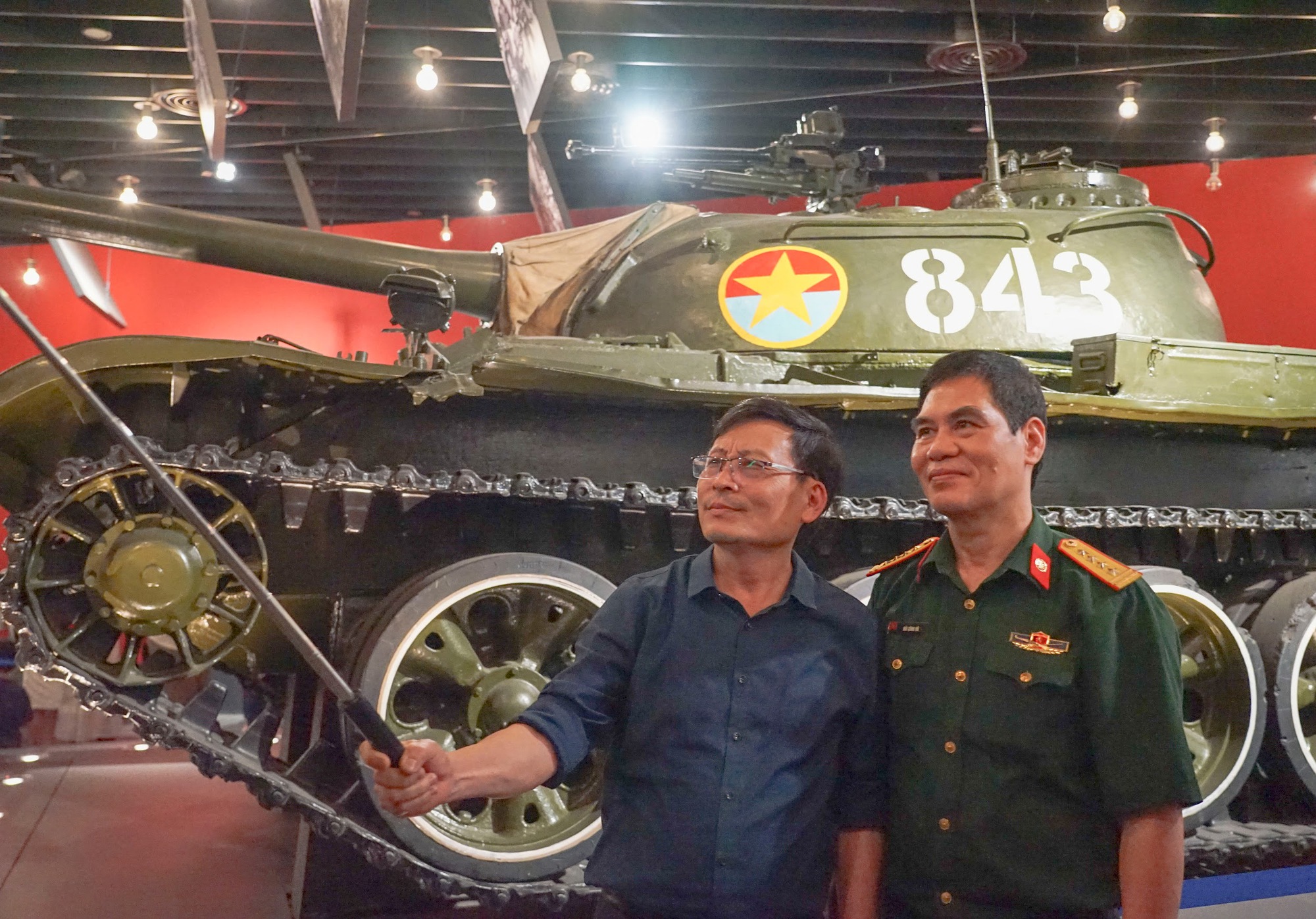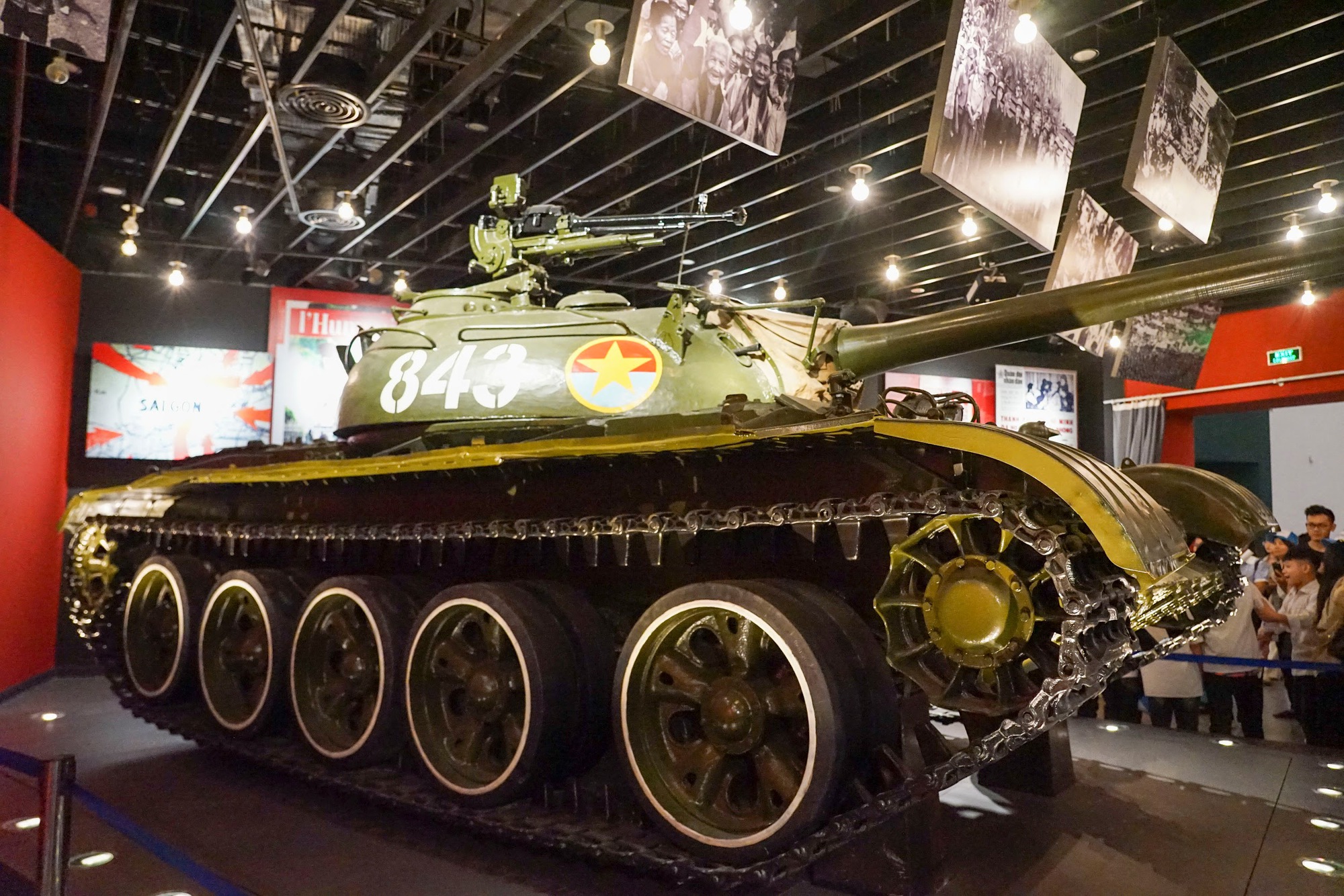 Ngoài ra, chiếc xe tăng T54B số hiệu 843 cũng thu hút sự chú ý của đông đảo khách tham quan. Xe tăng này do Liên Xô sản xuất và thuộc Đại đội 4, Tiểu đoàn 1, Lữ đoàn xe tăng 203. Ngày 30/4/1975, dưới sự chỉ huy của Trung úy Bùi Quang Thận xe tăng 843 tiến về Dinh Độc Lập, bắn cháy 3 xe tăng và bọc thép của địch trên đường đi, húc đổ cổng phụ của Dinh Độc Lập. Từ trên xe Đại đội trưởng Bùi Quang Thận nhảy xuống nhanh chóng chạy lên nóc Dinh Độc Lập cắm lá cờ đỏ sao vàng của Mặt trận dân tộc Giải phóng miền Nam Việt Nam, đánh dấu giờ phút thiêng liêng của dân tộc.