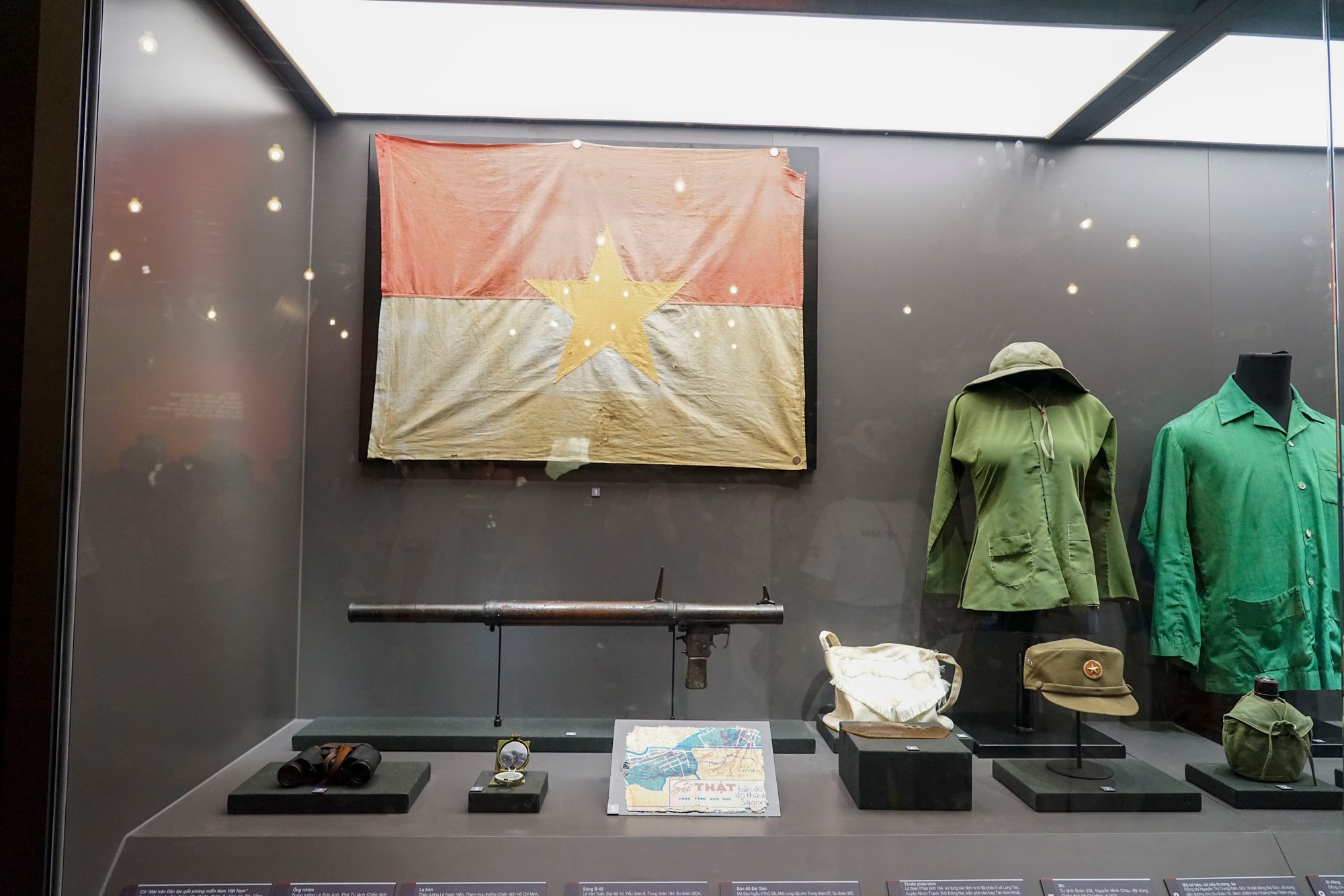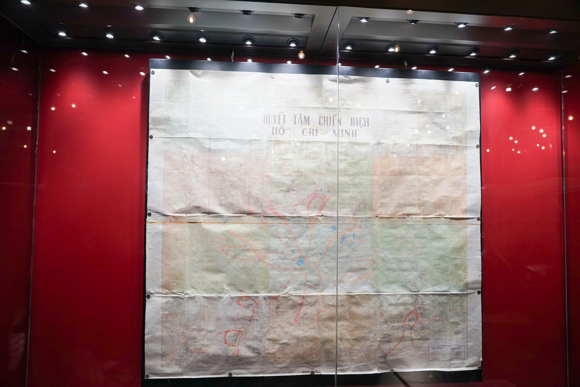Bản đồ Quyết tâm Chiến dịch Hồ Chí Minh, một trong bốn bảo vật quốc gia được trưng bày, cũng thu hút sự chú ý của du khách. Bản đồ được các cán bộ Phòng Tác chiến Bộ Tư lệnh Quân giải phóng miền Nam Việt Nam phối hợp với Bộ Tổng tham mưu trên nền bản đồ miền Nam Việt Nam từ ngày 15/4/1975 đến 21/4/1975, tại Sở chỉ huy Chiến dịch Hồ Chí Minh, đóng tại Tà Thiết, Lộc Ninh, Tây Ninh (nay thuộc tỉnh Bình Phước). Những hình vẽ mũi tên màu đỏ thể hiện mũi tiến công của các cánh quân tiến về Sài Gòn.