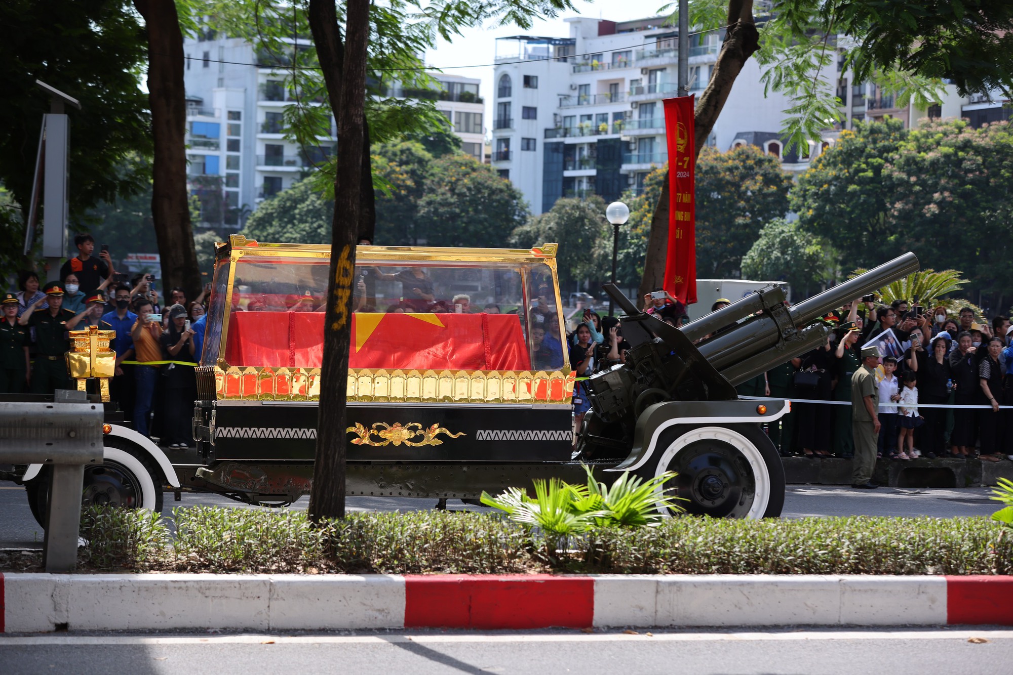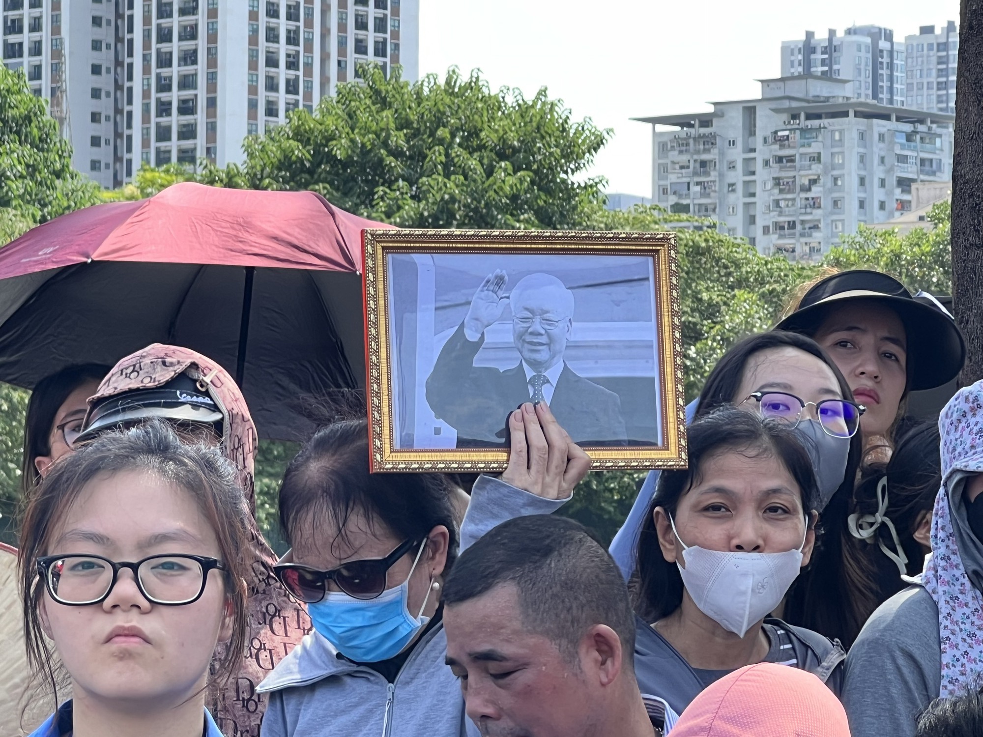 Bất chấp trời nắng nóng, oi bức, người dân vẫn đổ ra các tuyến đường, đứng chật kín hai bên vỉa hè để tạm biệt và thẫn thờ khi xe chở linh cữu Tổng Bí thư đi qua.