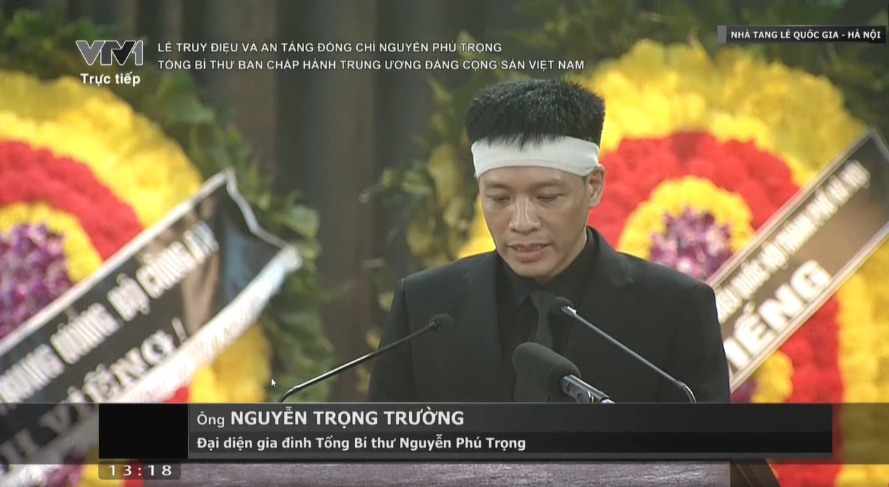 Tiếp đó, ông Nguyễn Trọng Trường, con trai Tổng Bí thư Nguyễn Phú Trọng thay mặt gia đình nói lời cảm tạ.