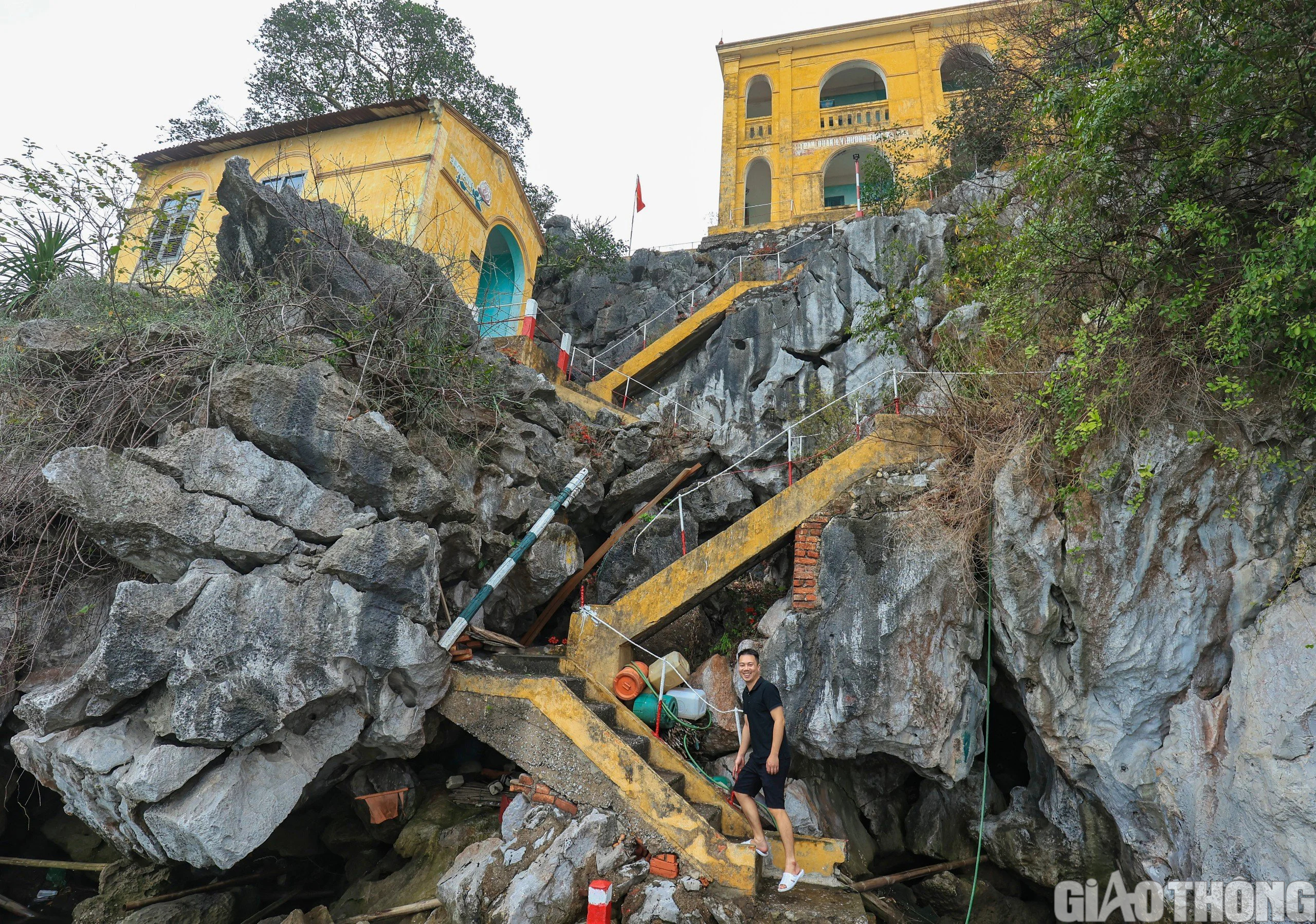 Dọc đường lên, dễ dàng bắt gặp những cây hoa bỏng, hoa dừa cạn, gần đến nhà trạm có cả cây lựu, cây chanh, vài khóm sả trên những hốc đá, tô điểm thêm chút tươi thắm cho quang cảnh cô quạnh. “Cây hoa ở đây khó sống lắm, rất dễ lụi vì không có đất. Các cây này là do trước kia anh em nấu cơm bằng bếp than tổ ong, xỉ than thì dầm ra, tãi vào các hốc đá để trồng. Các khóm sả kia trồng quanh nhà trạm để ngăn rắn đấy, nhiều rắn lục lắm”, ông Tính kể.
