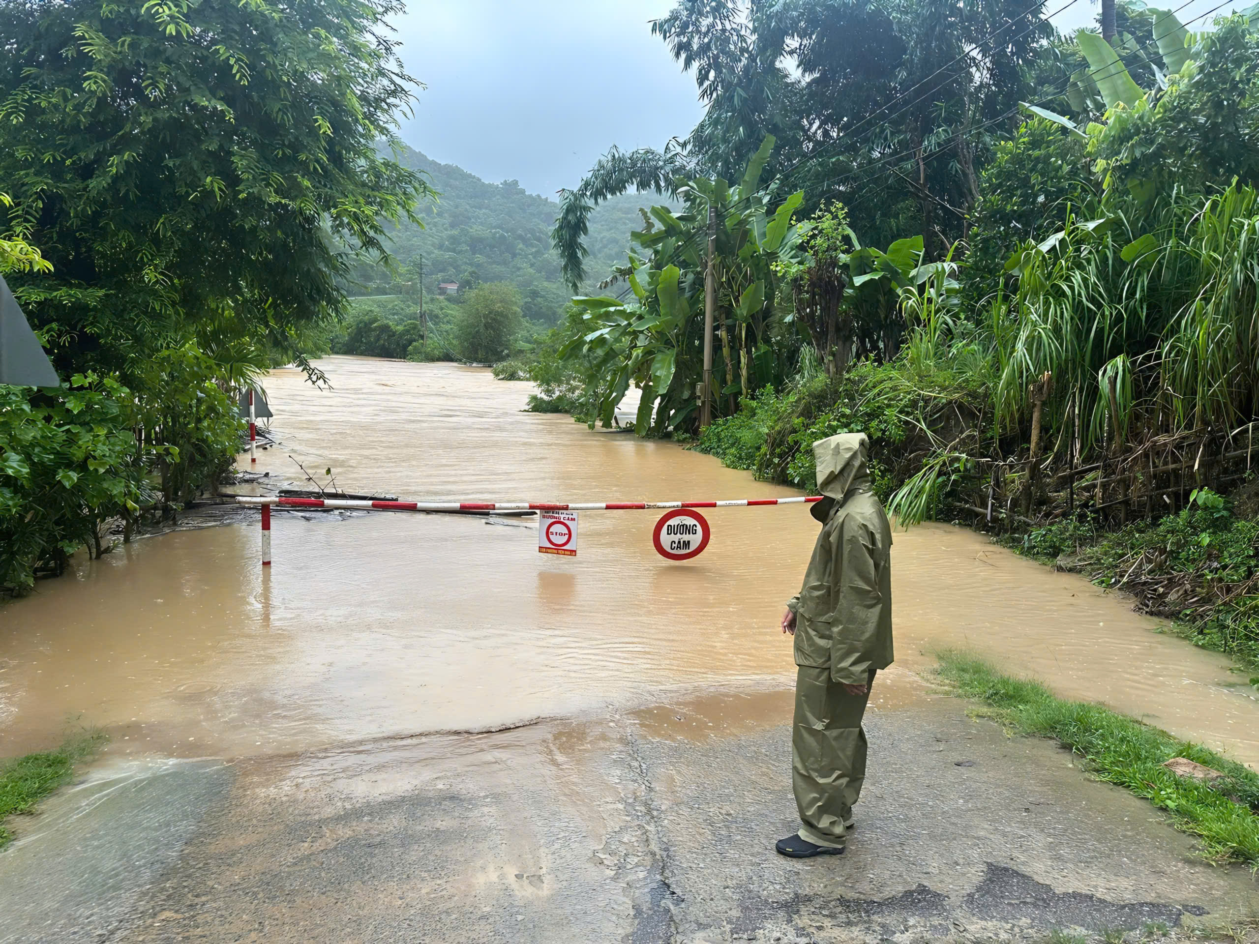 Không chỉ QL7, mưa lớn còn làm nhiều tuyến đường liên xã ở Tam Thái ngập sâu, tạm thời chia cắt một số bản vùng trong. Đặc biệt, đường vào 5 bản xa trung tâm bị nước dâng cao, người dân không thể đi lại.