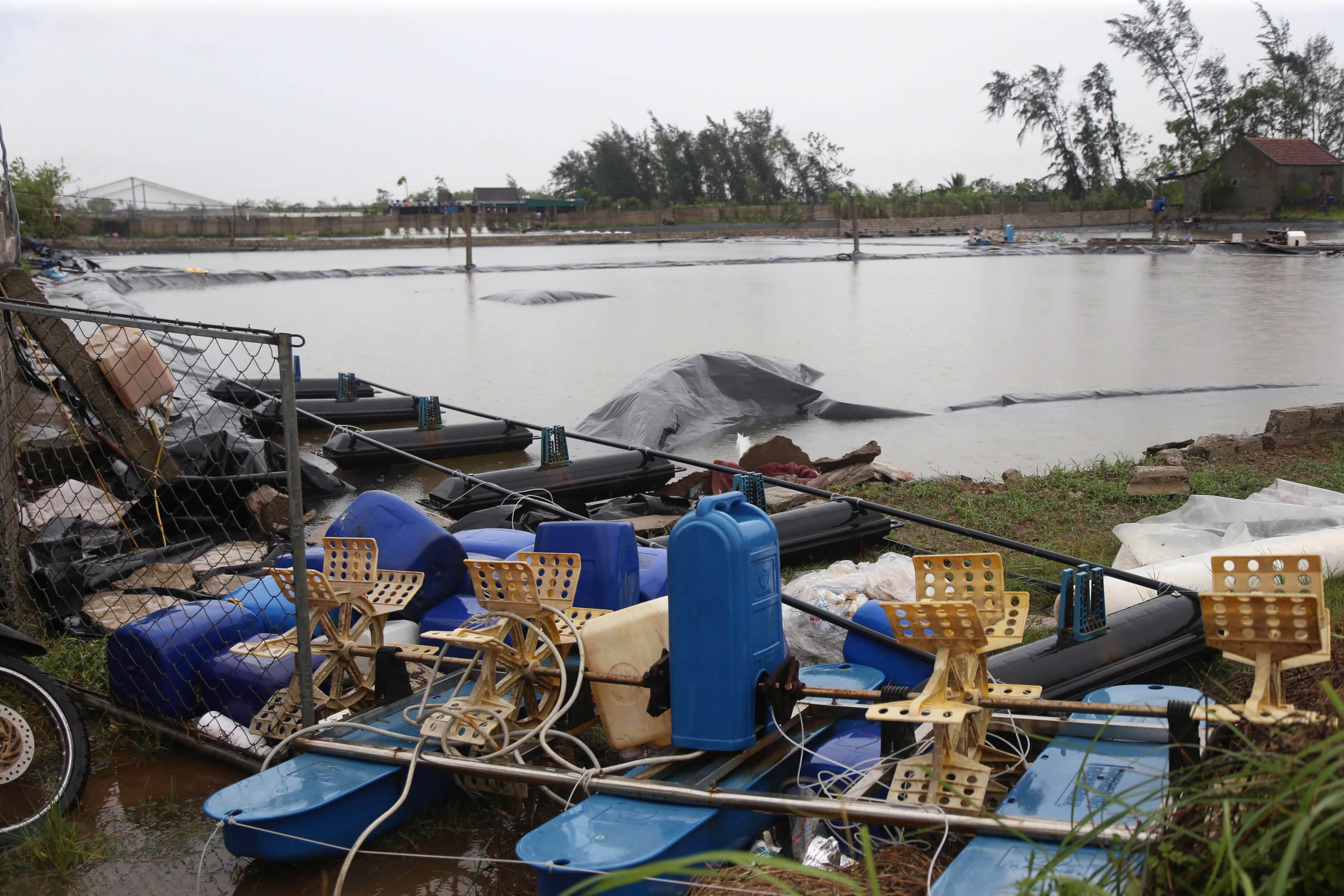 Nhiều hộ nuôi tôm quanh nhà anh Toàn cũng bị nước ngập, gây hư hại tài sản, tôm thoát ra ngoài hoặc chết. Anh Lê Văn Việt, một hộ nuôi tôm cho biết: “Nước ngập làm hư hại bờ hồ, cột điện, hệ thống máy bơm, máy sục ô-xy đều chìm trong nước, không thể hoạt động”.