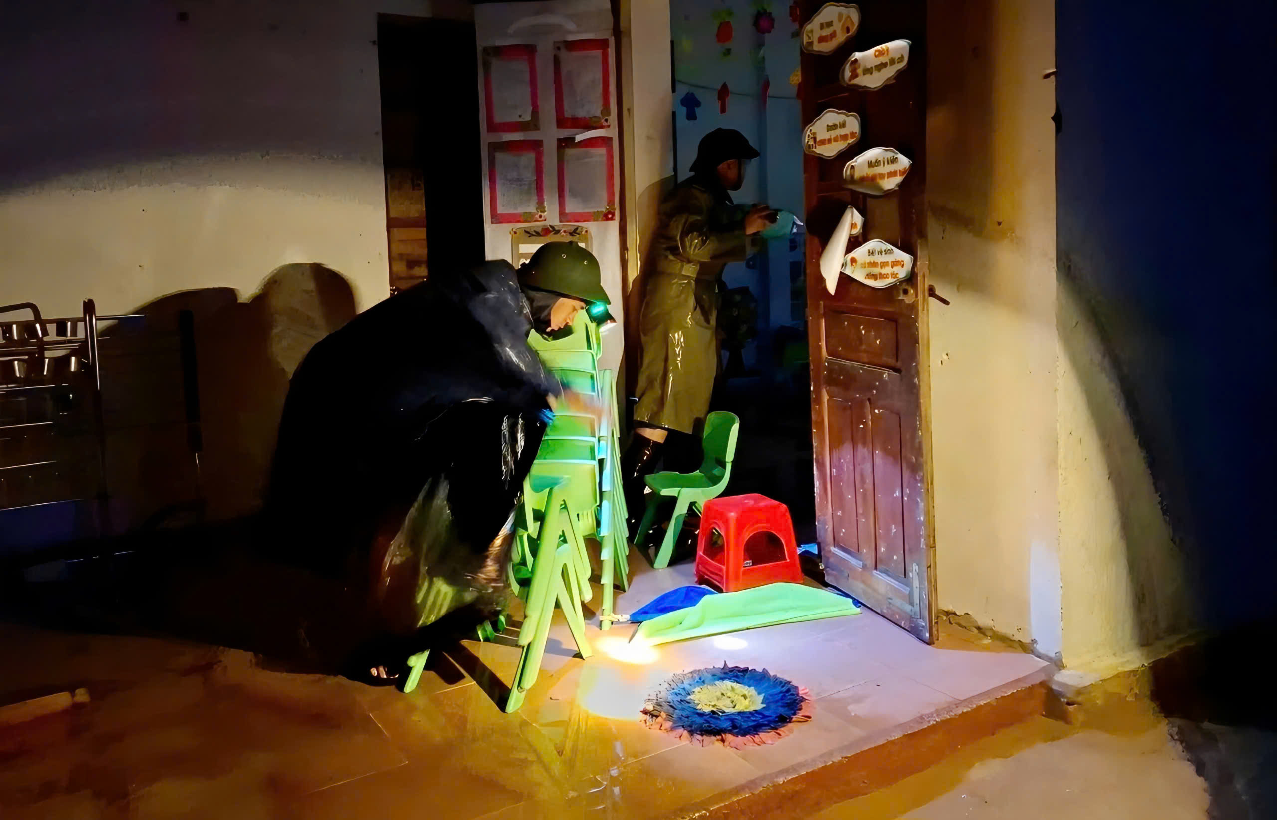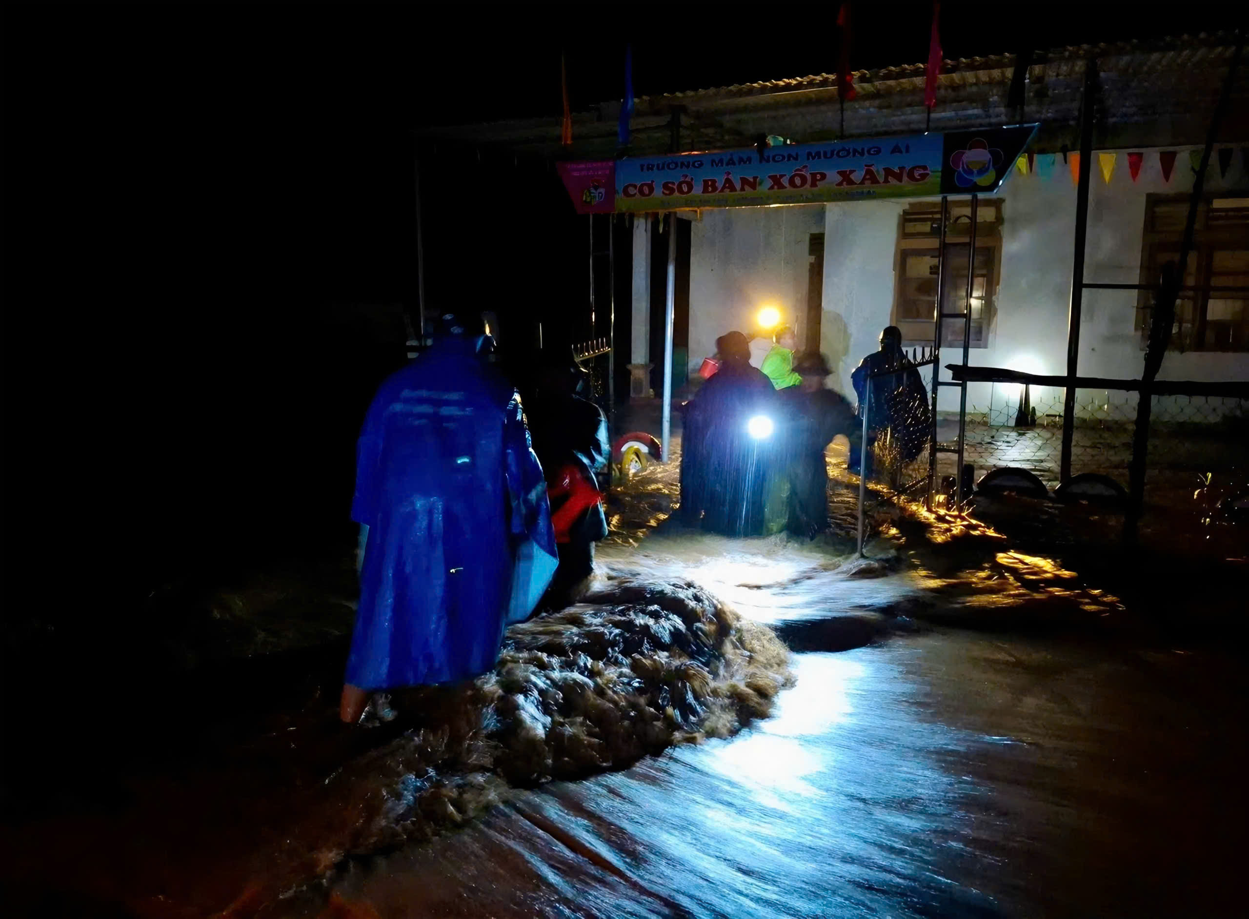 Ngoài ra, điểm trường mầm non Xốp Xăng bị nước lũ tràn vào, làm hư hỏng đồ dùng dạy học. Suốt đêm, lực lượng chức năng lội nước di chuyển tài sản ra ngoài để giảm thiệt hại.