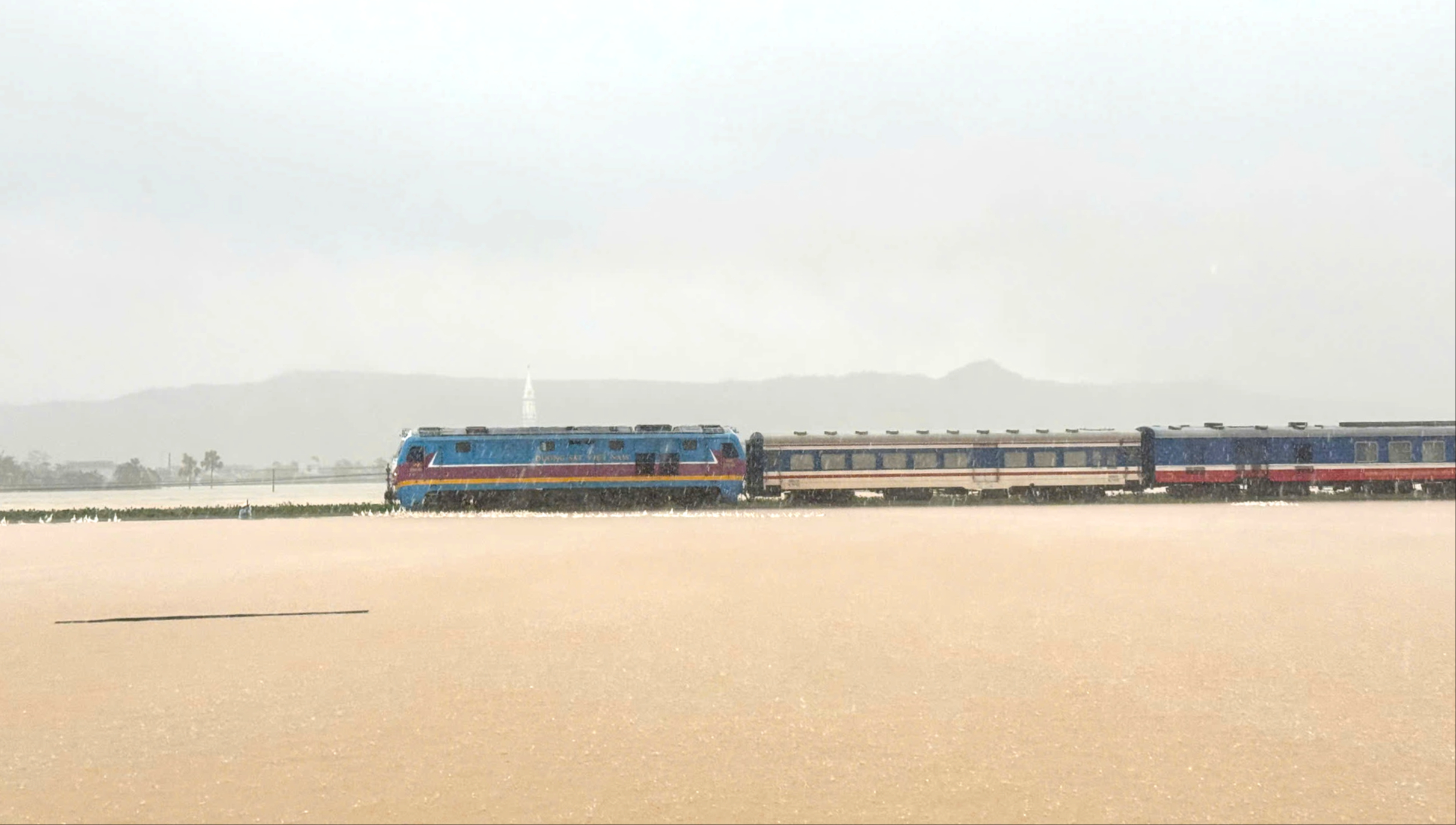 Đến 10h ngày 30/9, mực nước đo tại Trạm Thủy văn Chuối đạt 4,52m, cao hơn mức báo động III (+3,50m) là 1,02m; lượng mưa ghi nhận 0,8mm. Mưa lũ đã làm ngập nhiều tuyến đường giao thông. (Ảnh: P. Tuấn).