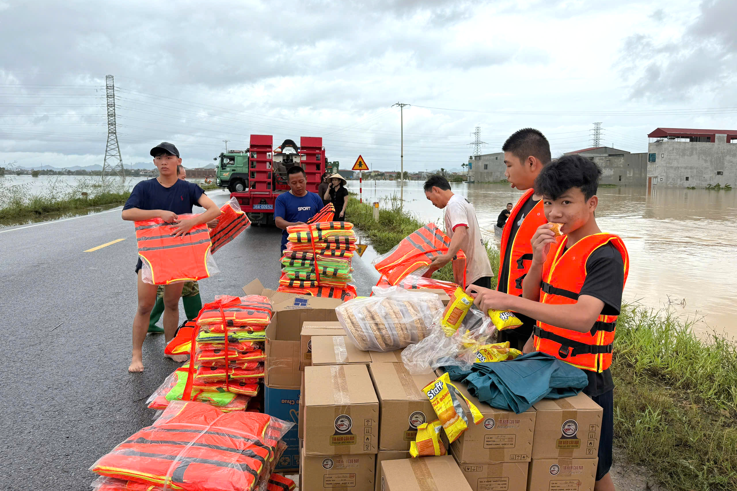 Ngày 30/9, chính quyền địa phương cùng các tổ chức thiện nguyện đã chuyển nhu yếu phẩm đến khu vực khô ráo, chuẩn bị tiếp tế cho các hộ dân đang bị mắc kẹt trong vùng cô lập. (Ảnh: P. Tuấn).