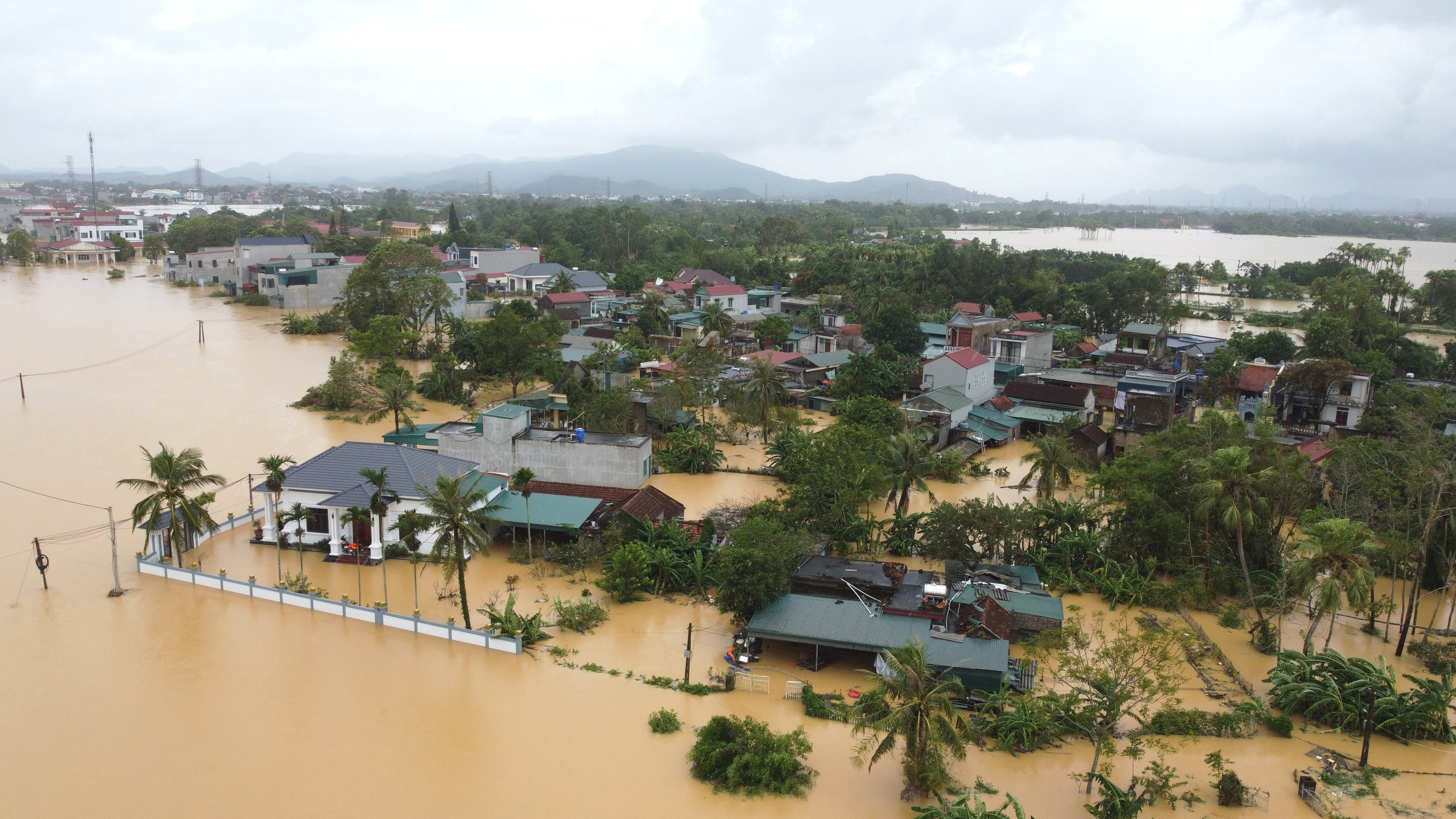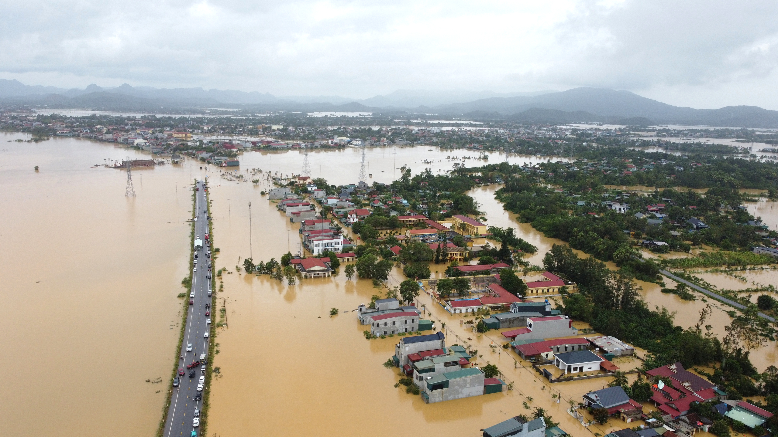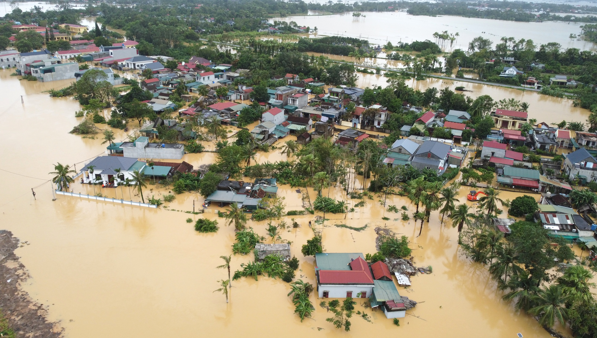 Do ảnh hưởng bão số 10, trong các ngày 28 và 29/9, trên địa bàn xã Nông Cống (tỉnh Thanh Hóa) có mưa rất to, cộng với nước sông Yên dâng cao đã gây ngập diện rộng, gần như bao trùm toàn bộ địa giới xã. (Ảnh: P. Tuấn).